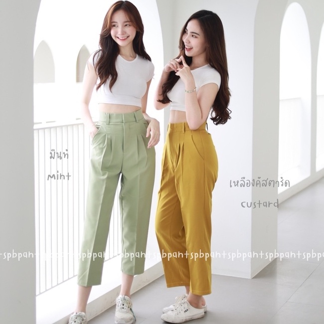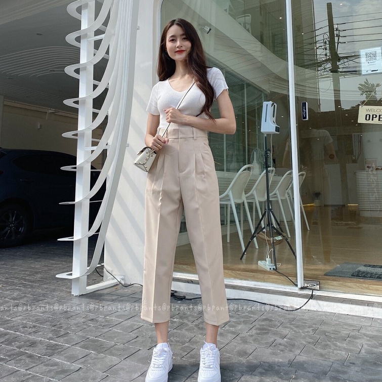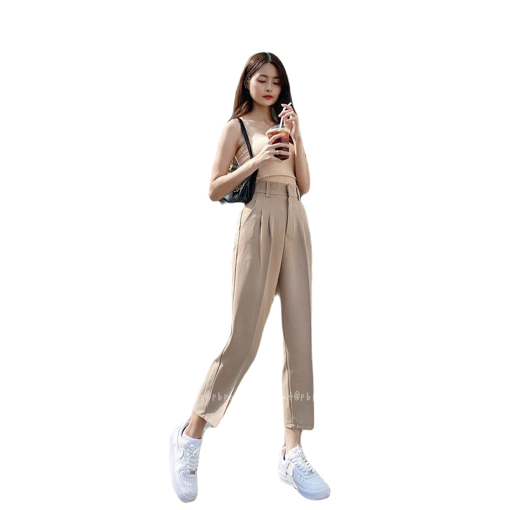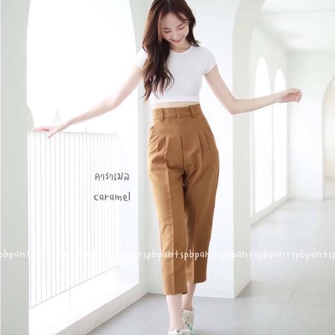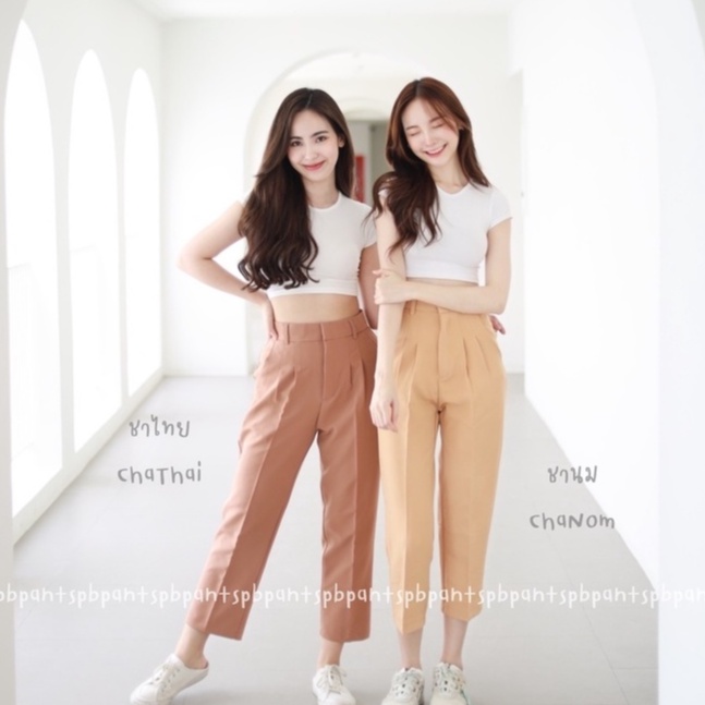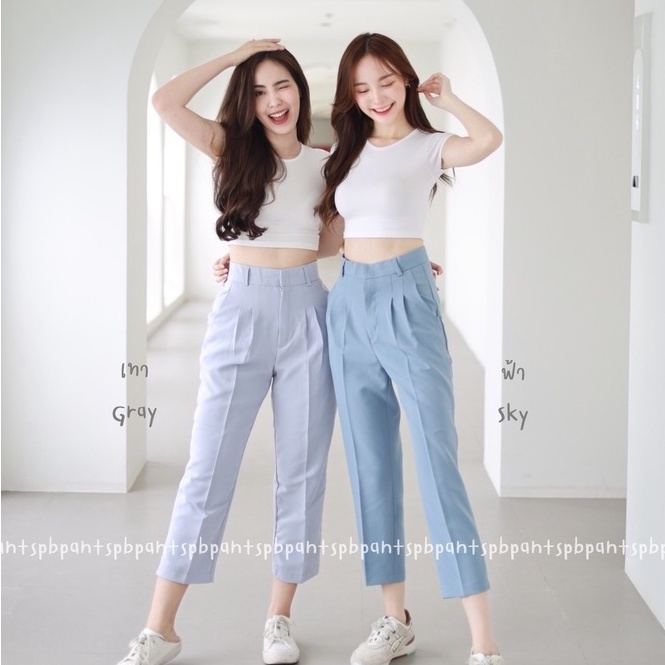 (KK) 🎉🌟Pepe pants กางเกงทรงบอยตะขอหน้าผ้าเปเป้ 7 ส่วน
