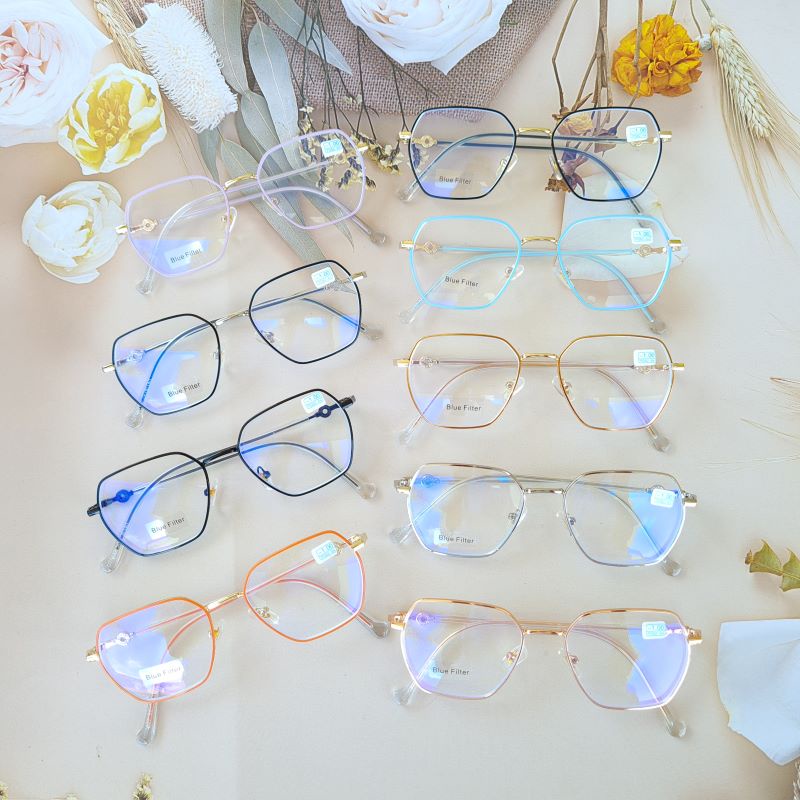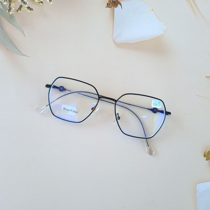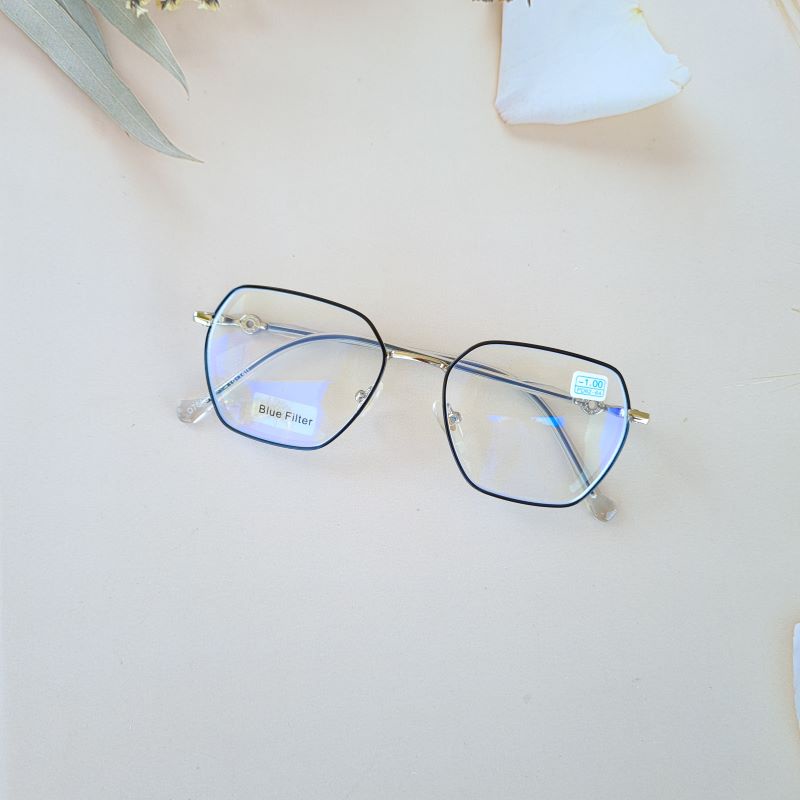 แว่นสายตาสั้น ทรงเหลี่ยม เลนส์บลู กรอบโลหะ ป้องกันรังสีสีฟ้า แว่นตาป้องกันคอมพิวเตอร์ 76137