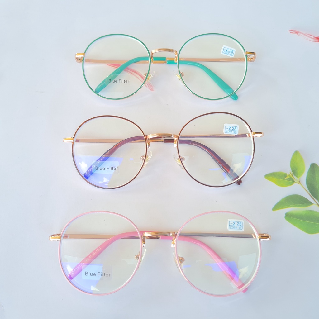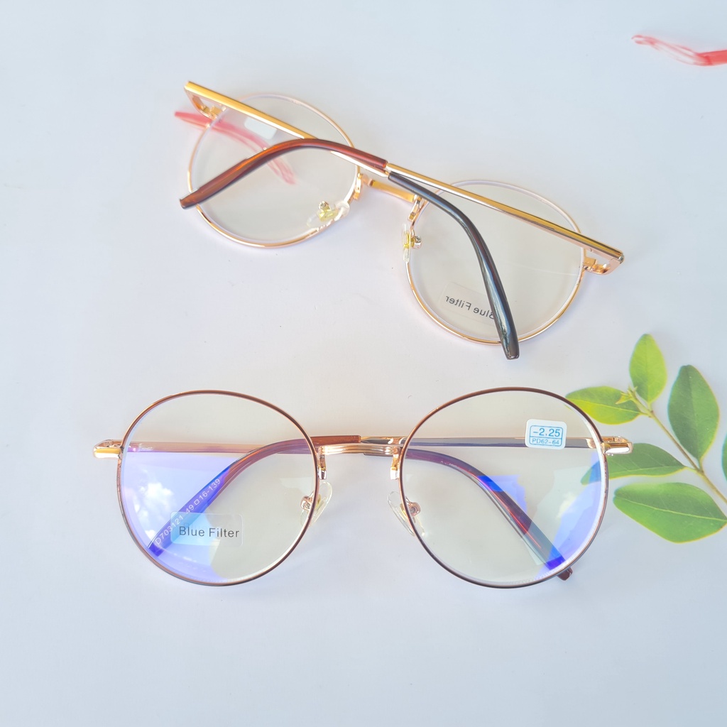 แว่นสายตาสั้นขาสปริง ทรงหยดน้ำ เลนส์บลู กรอบโลหะ ป้องกันรังสีสีฟ้า แว่นตาป้องกันคอมพิวเตอร์ D121