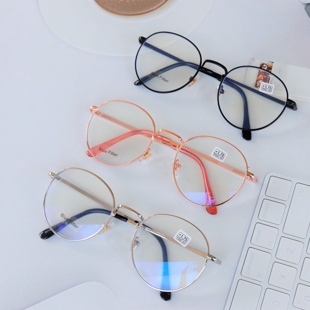 แว่นสายตายาว ทรงหยดน้ำ เลนส์บลู กรอบโลหะ ป้องกันรังสีสีฟ้า แว่นตาป้องกันคอมพิวเตอร์ 6015 B