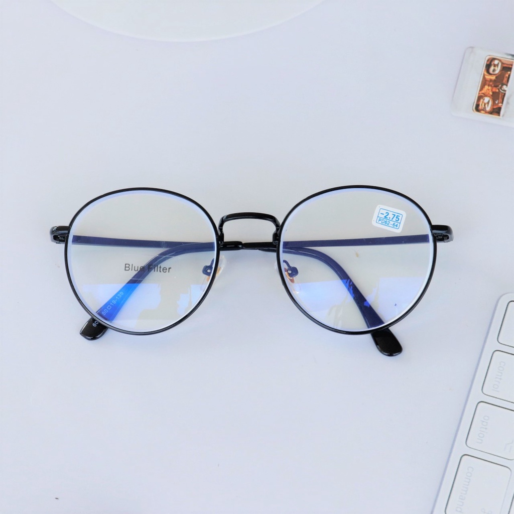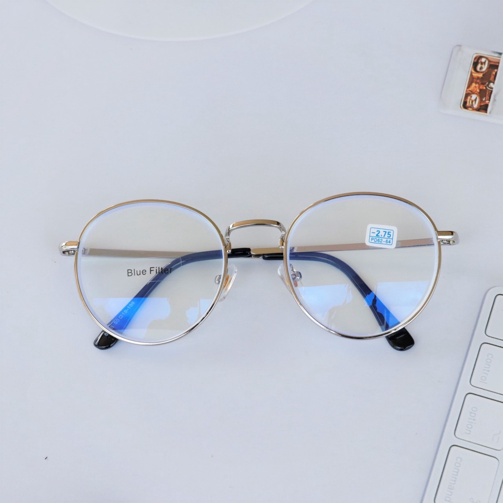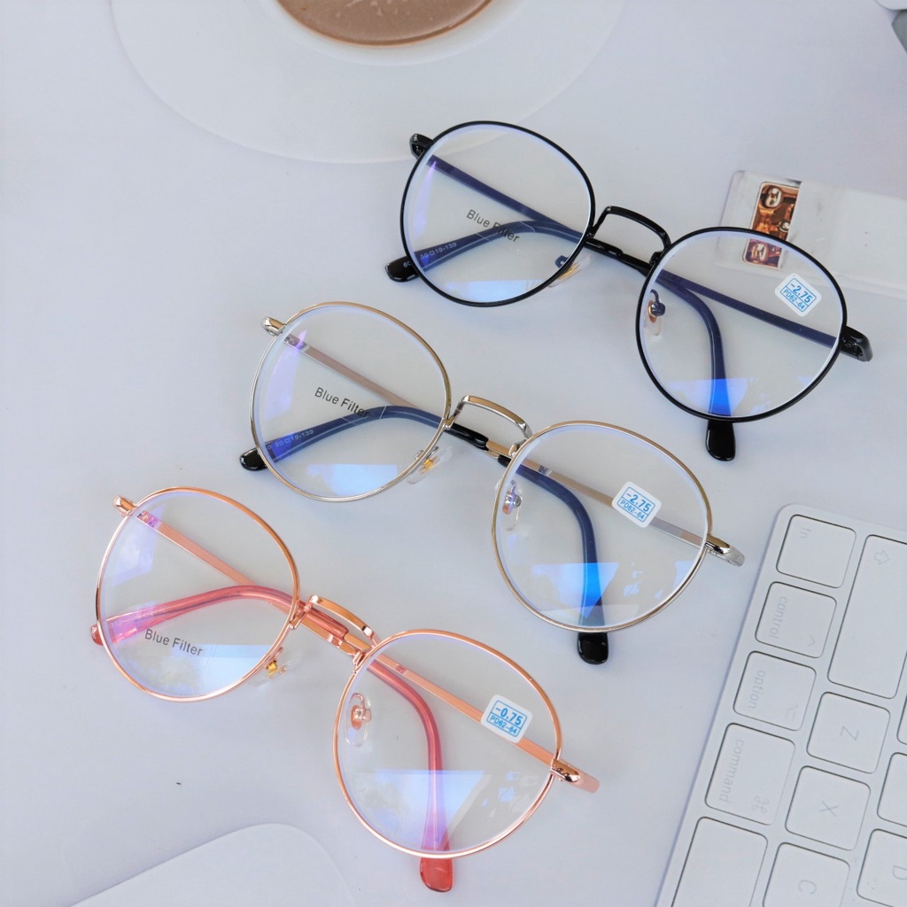 แว่นสายตาสั้น ทรงหยดน้ำ เลนส์บลู กรอบโลหะ ป้องกันรังสีสีฟ้า แว่นตาป้องกันคอมพิวเตอร์ 6015 B