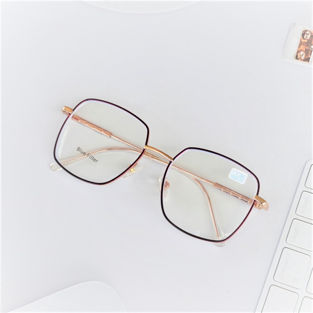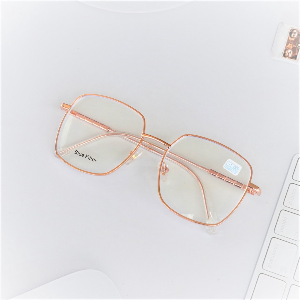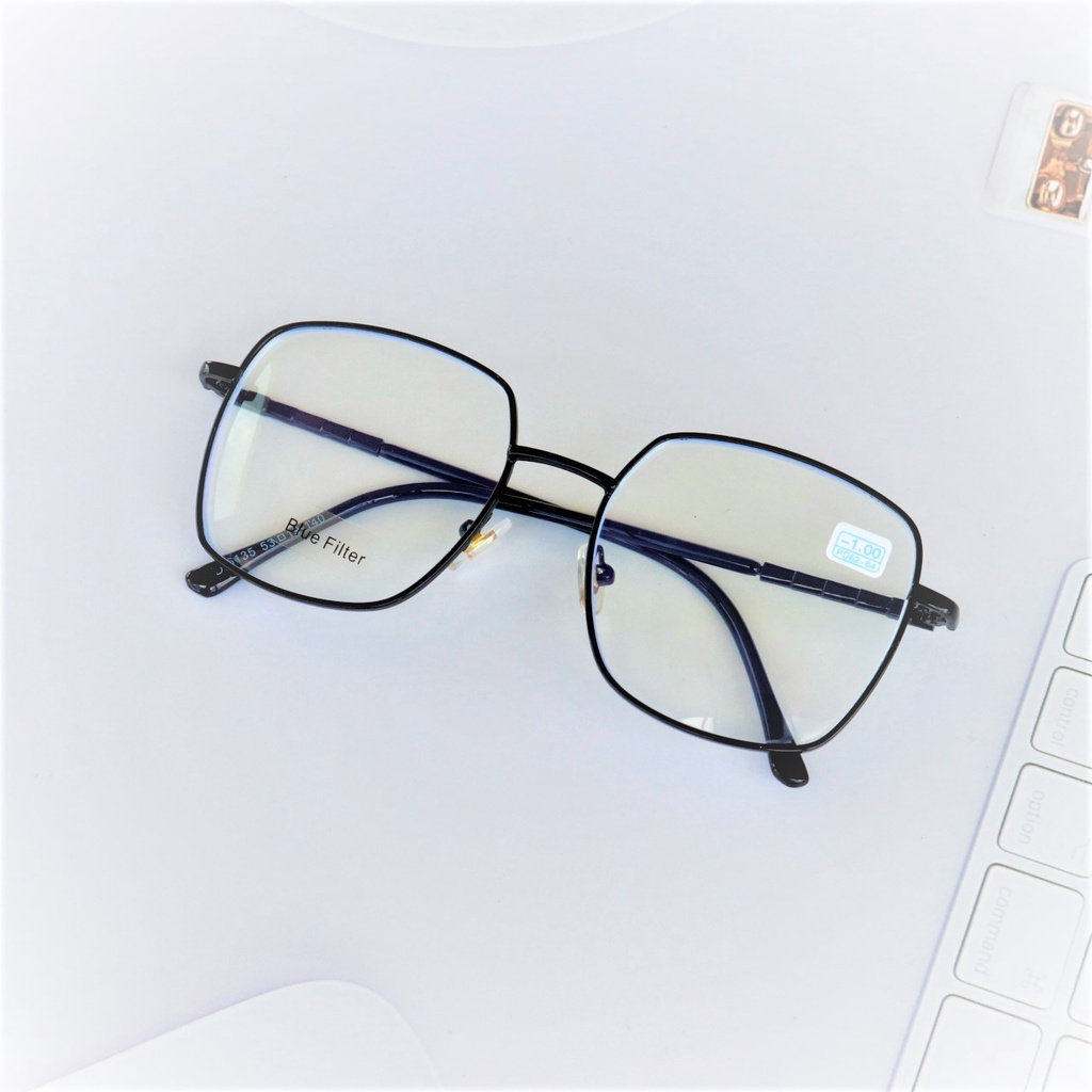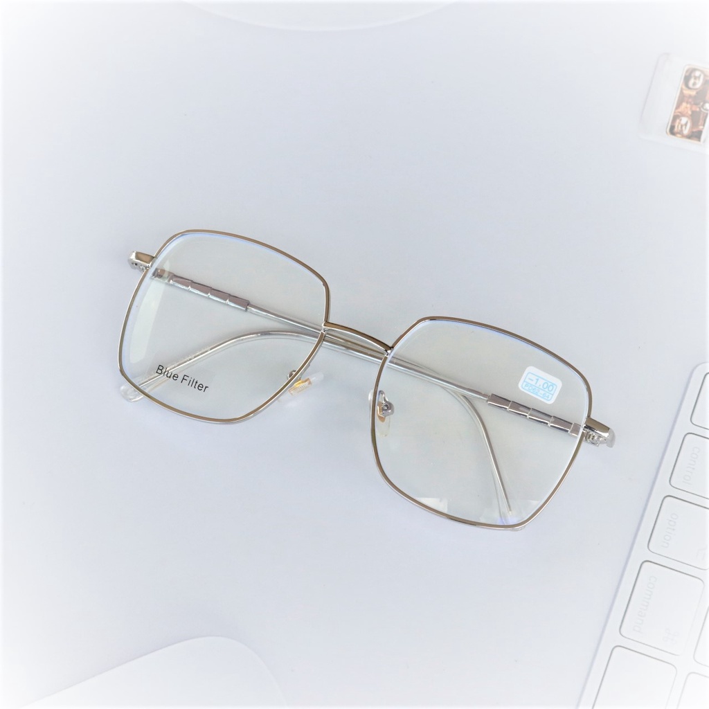 แว่นสายตาสั้น ทรงเหลี่ยม เลนส์บลู กรอบโลหะ ป้องกันรังสีสีฟ้า แว่นตาป้องกันคอมพิวเตอร์ 76135B