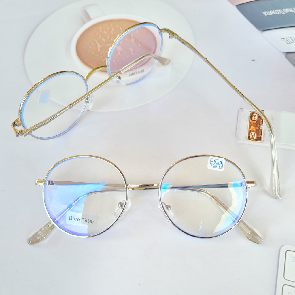 แว่นสายตาสั้นเลนส์บลู ทรงหยดน้ำกรอบโลหะ ป้องกันคอมพิวเตอร์และป้องกันรังสีสีฟ้า 8019