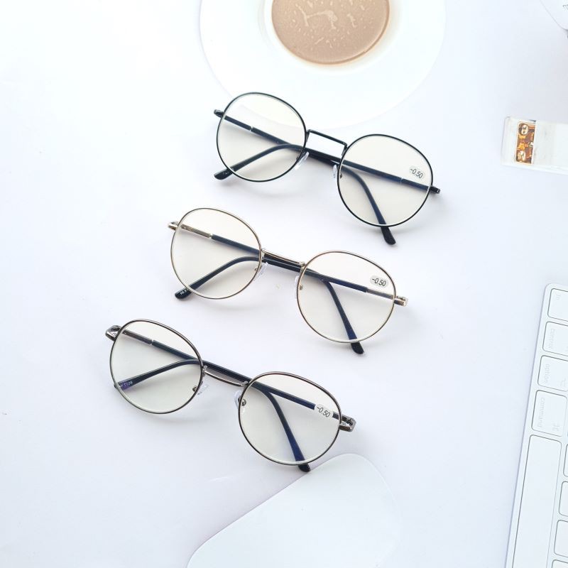 แว่นสายตาสั้นกรองแสงขาสปริง ทรงหยดน้ำ กรอบโลหะ 5105(a)