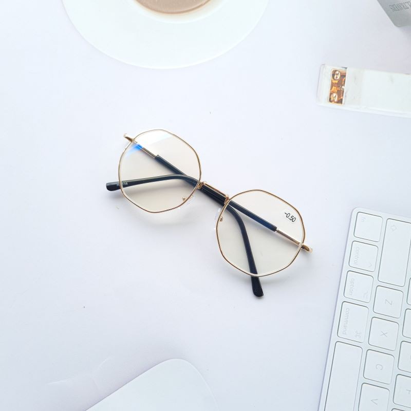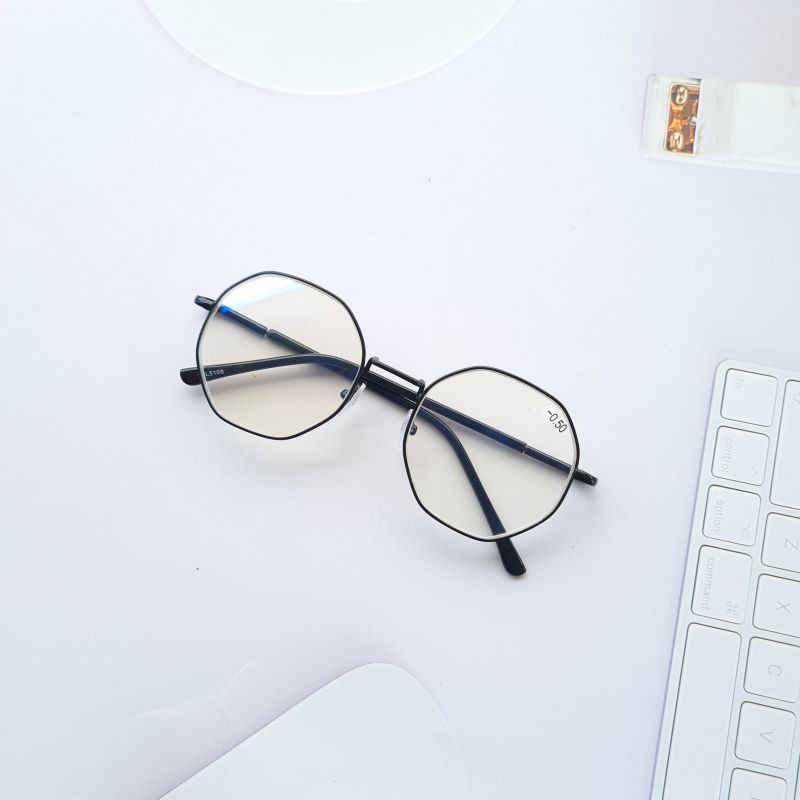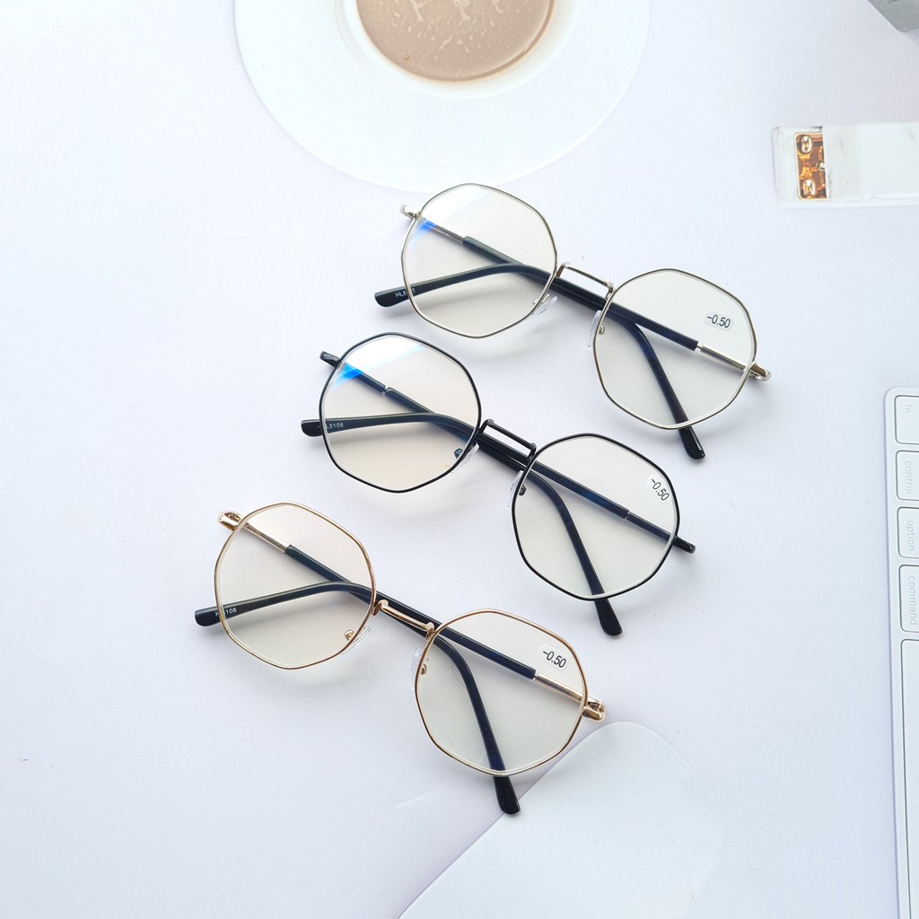 แว่นสายตาสั้นกรองแสงขาสปริง ทรงแปดเหลี่ยม กรอบโลหะ HL5108 (a)