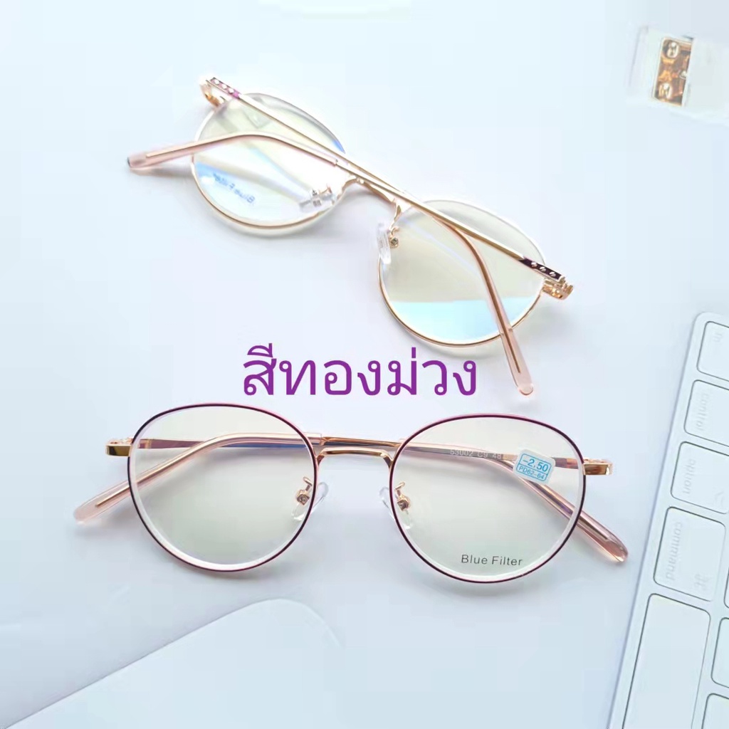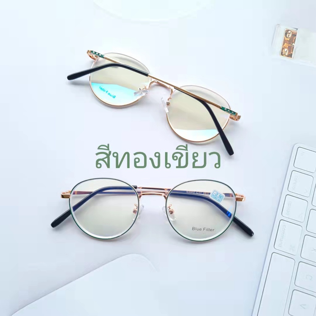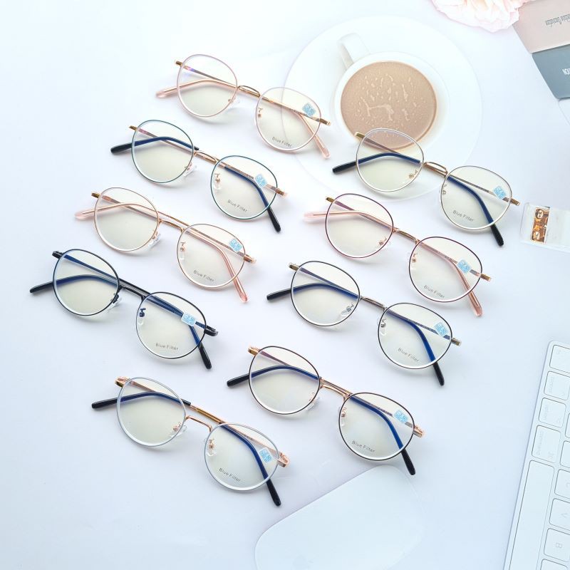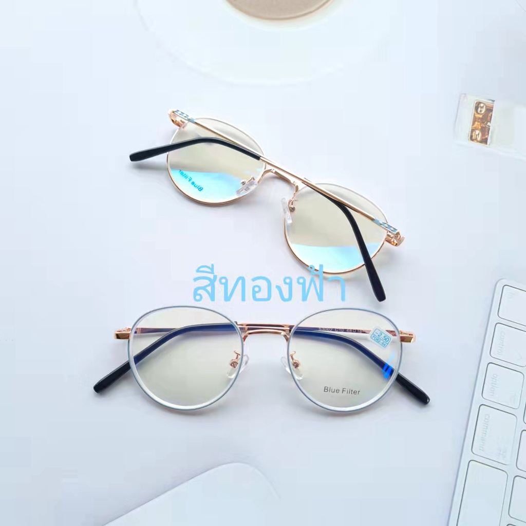 แว่นสายตาสั้น ทรงหยดน้ำ เลนส์บลู กรอบโลหะ ป้องกันรังสีสีฟ้า แว่นตาป้องกันคอมพิวเตอร์ 53002