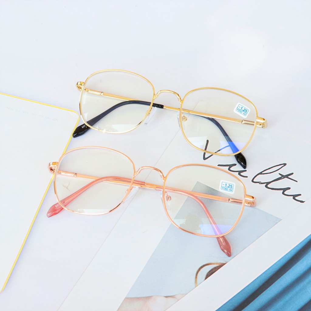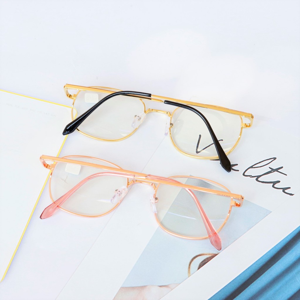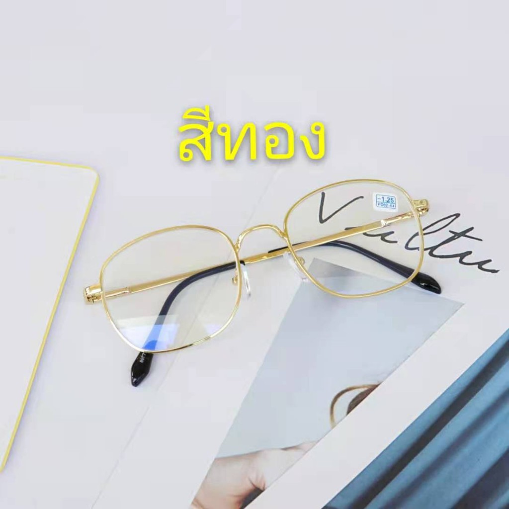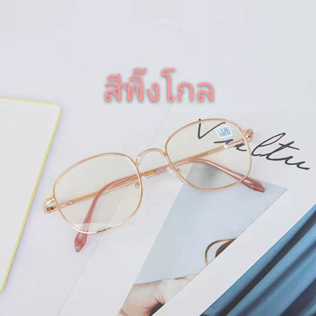 แว่นสายตาสั้นกรองแสง ทรงเหลี่ยม กรอบโลหะ HL8907 (สีทองและสีพิ๊งโกล)