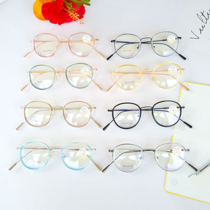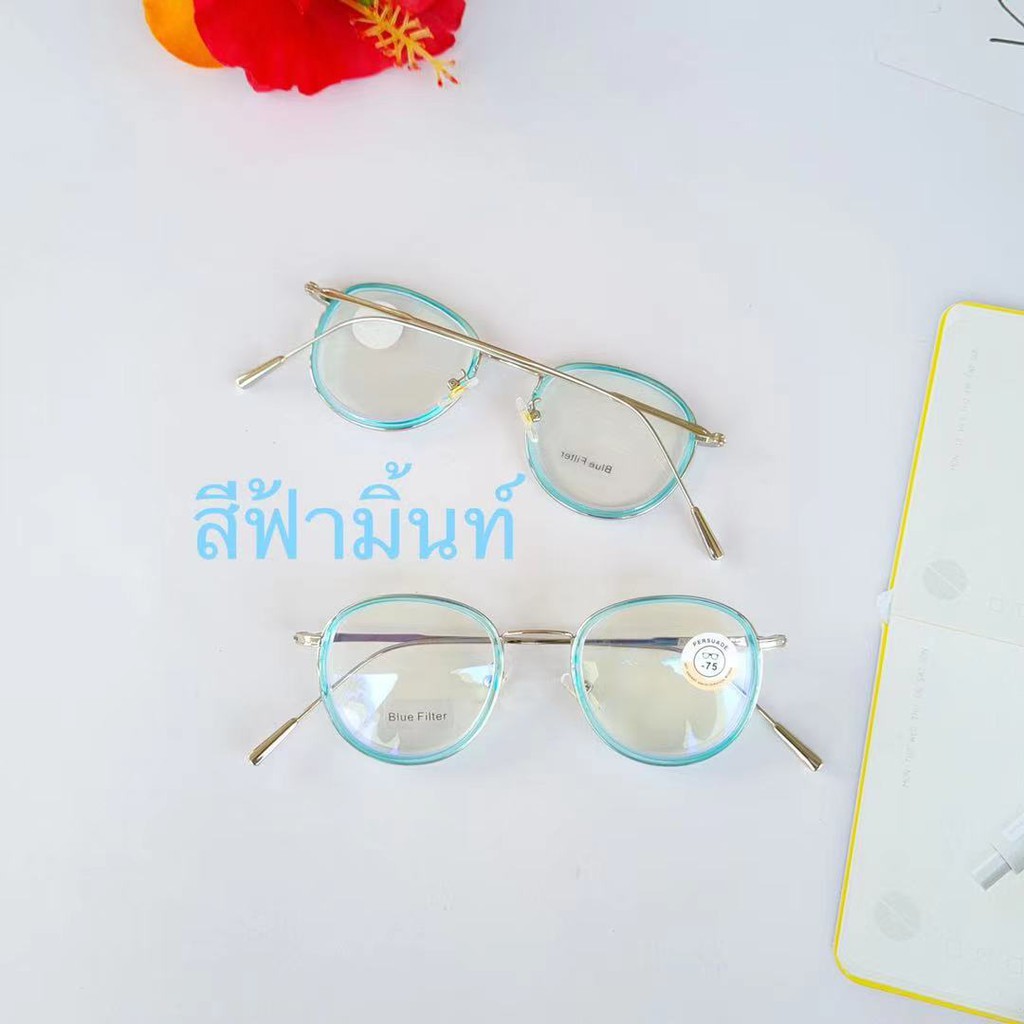 แว่นสายตาสั้นทรงหยดน้ำ เลนส์บลูป้องกันแสงสีฟ้าและแสงคอมพิวเตอร์ กรอบโลหะหุ้มด้วยพลาสติก 76122