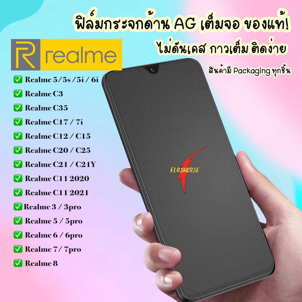 AG ฟิล์มด้าน Realme 5i / 5s / 5 / 5pro / 3 / 3pro / 6 /6i / 6pro / C1 / C2 / C3 ฟิล์มกระจกด้าน ฟิล์มเรียวมี