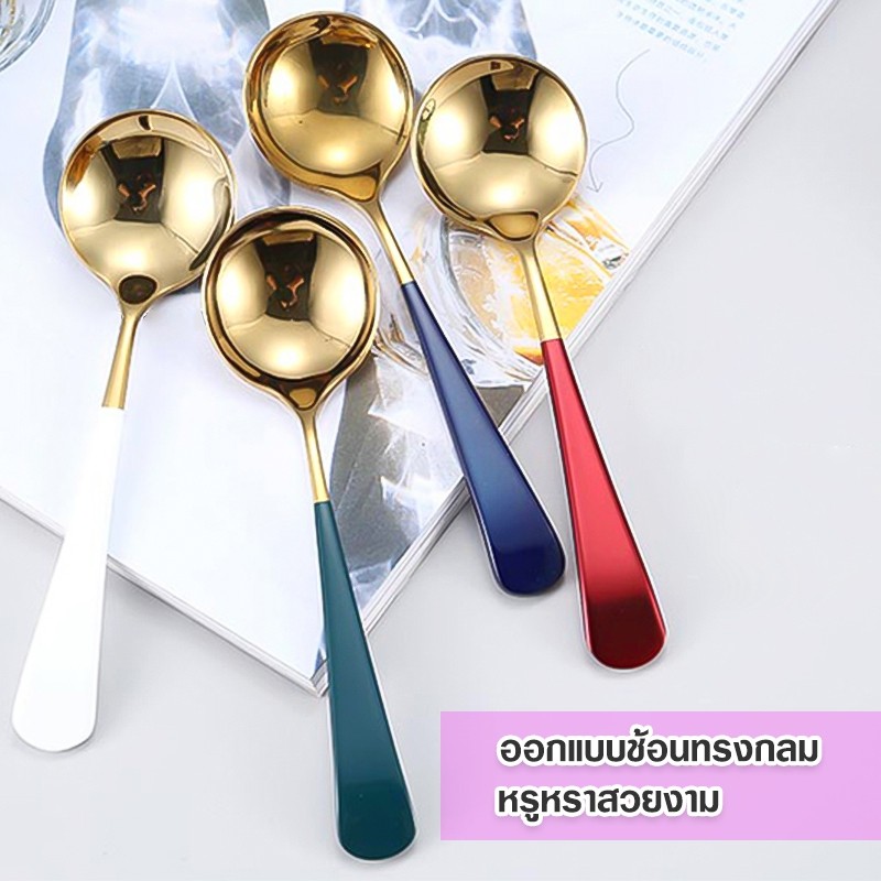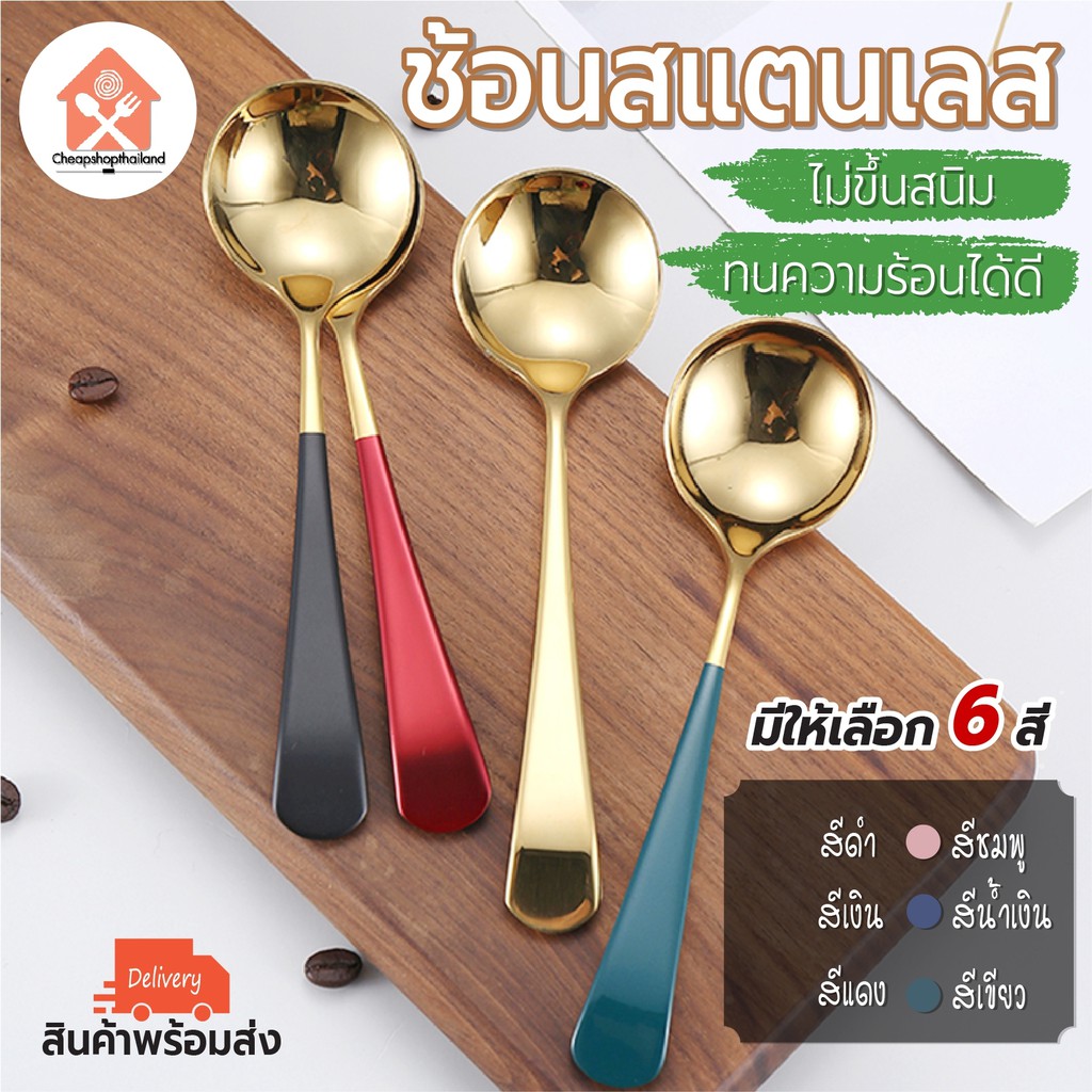 พร้อมส่ง/cheapshop/ช้อนสแตนเลส ช้อนกินข้าว ช้อนกลม ช้อนซุป ช้อนเกาหลี ผลิตจากวัสดุ สแตนเลสอย่างหนา