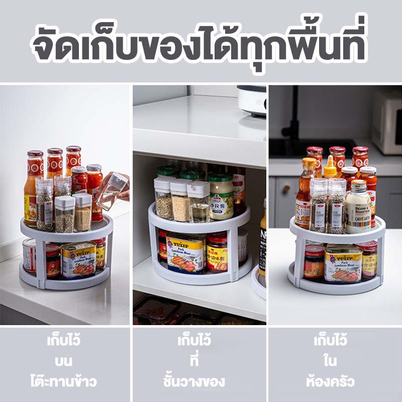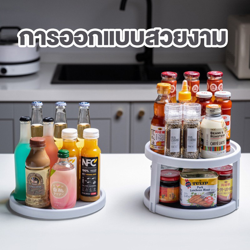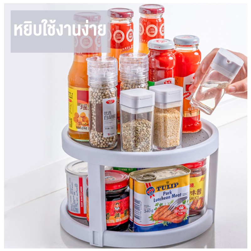 พร้อมส่ง/Cheapshop/ชั้นวางของ/เครื่องปรุง ของในตู้เย็น หมุนได้ 360 องศา ที่วางของ 2 ชั้น