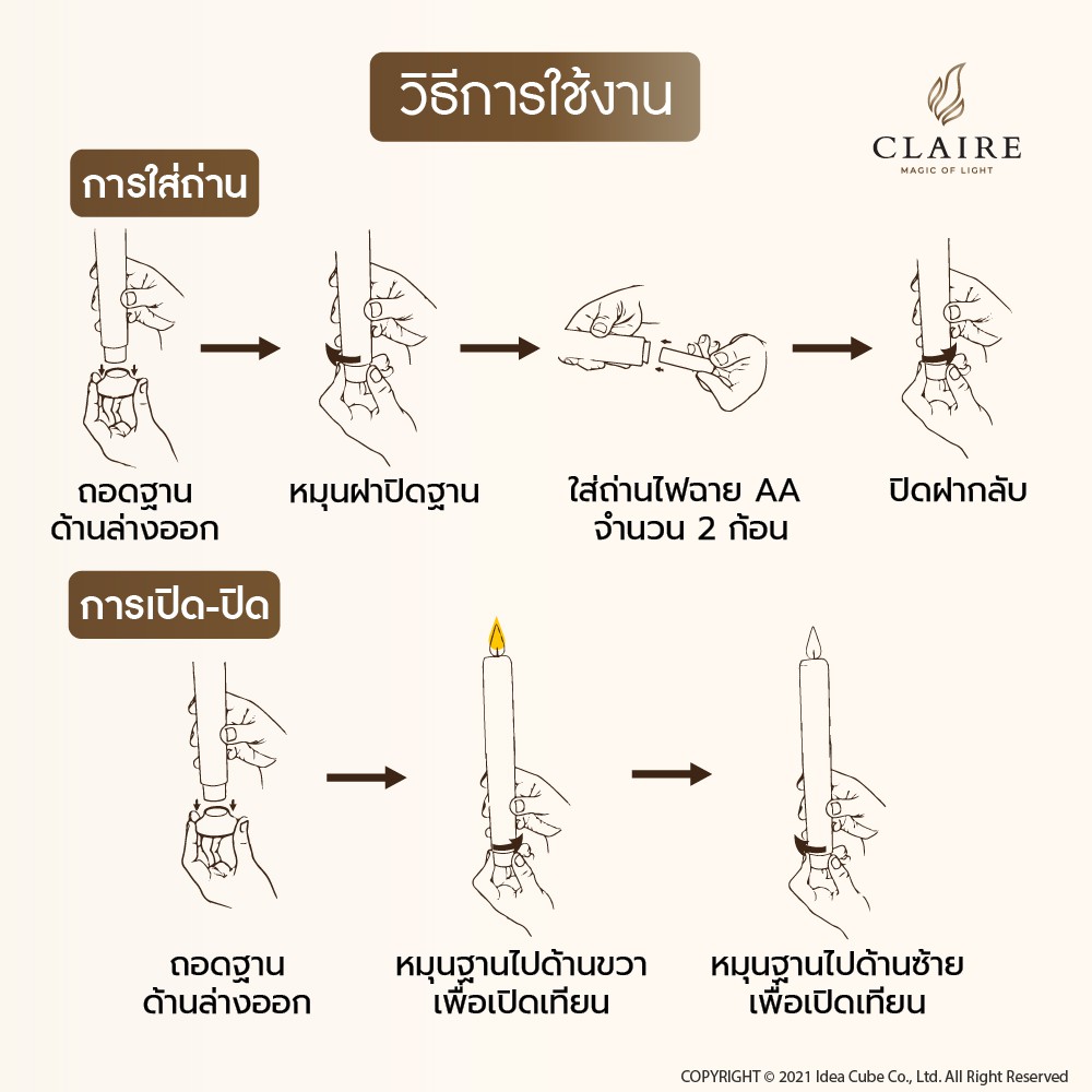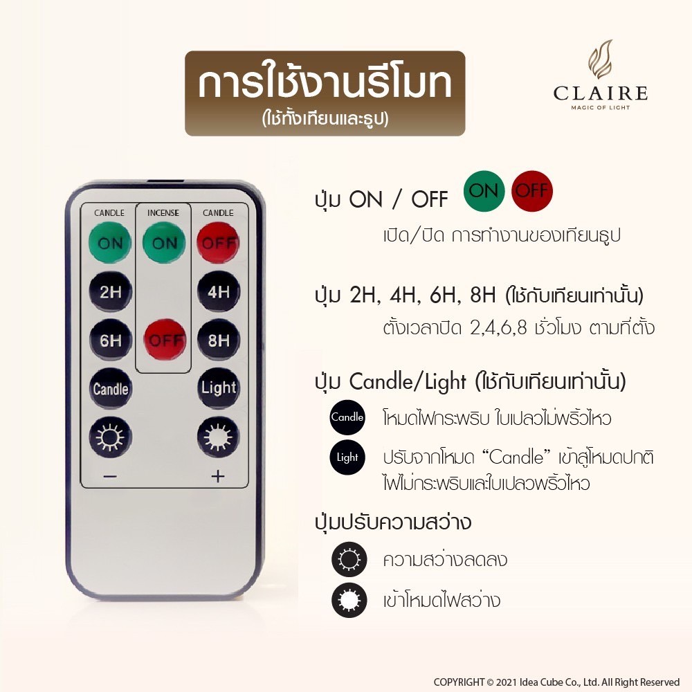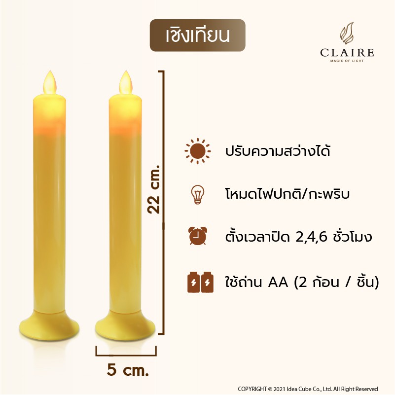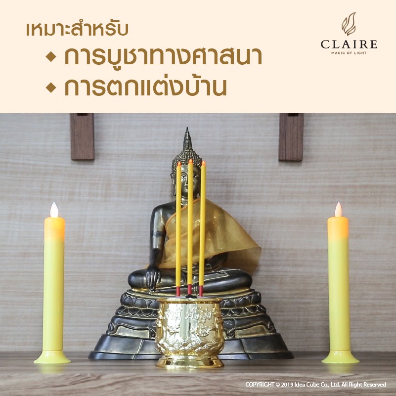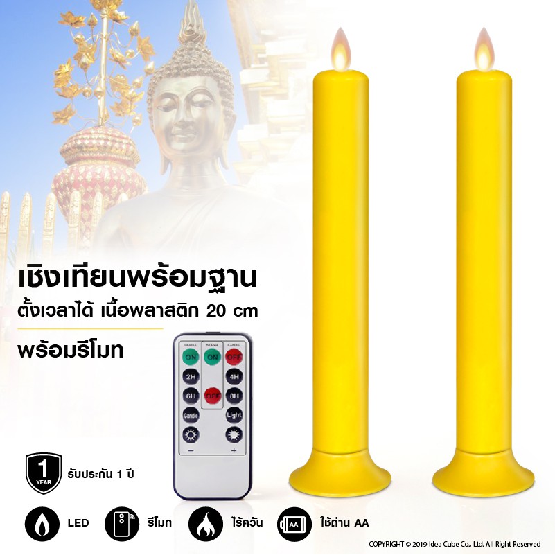 แคร์ล เชิงเทียนไฟฟ้า LED สูง22ซม. พลาสติก เหลืองพร้อมฐาน รีโมท ตั้งเวลา