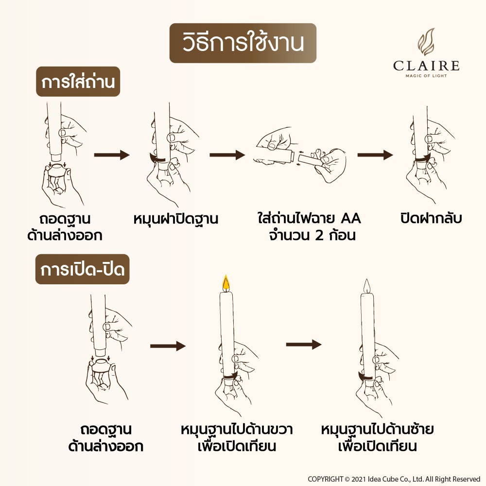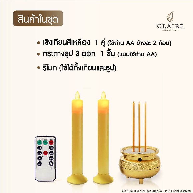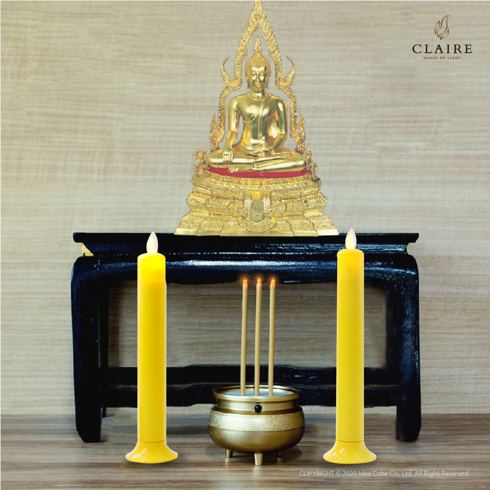 แคร์ล ชุดธูปเทียนไฟฟ้า LED ใส่ถ่าน ธูปไฟฟ้า 3 ดอก สูง 15 ซม. + เทียนสูง 22 ซม. สีเหลือง