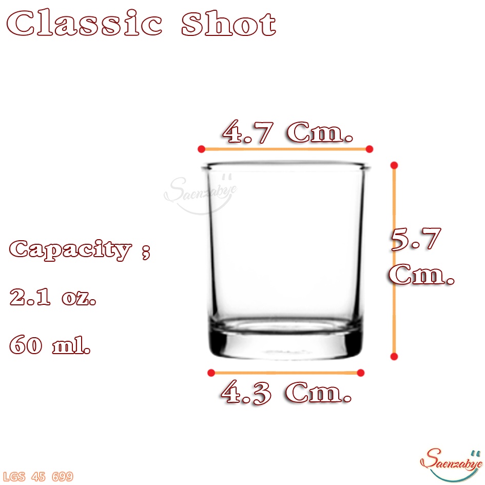 แก้วเป๊กชอต แก้วเหล้ายาดอง โซจู ใช้ตวง จัดค็อกเทล รุ่น 45 699 Classic Shot Glass ขนาด 2.1 oz. 60 ml.