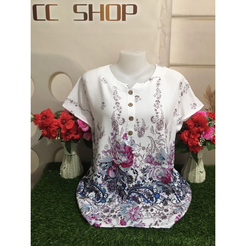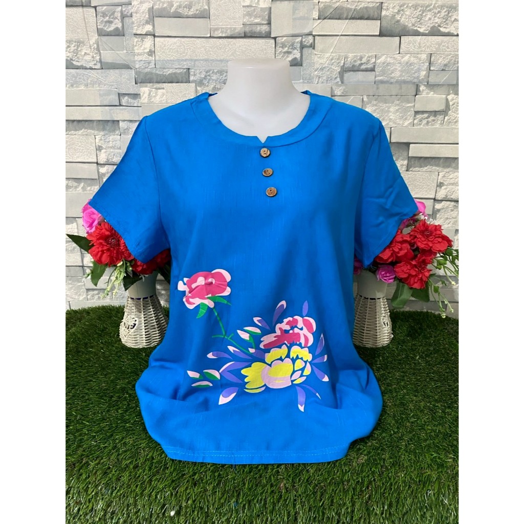 เสื้อผ้าสปัน เสื้อสงกรานต์ แขนสั่น รอบอก 38-44นิ้ว เสื้อลายดอก สาวอวบ รุ่น001-7