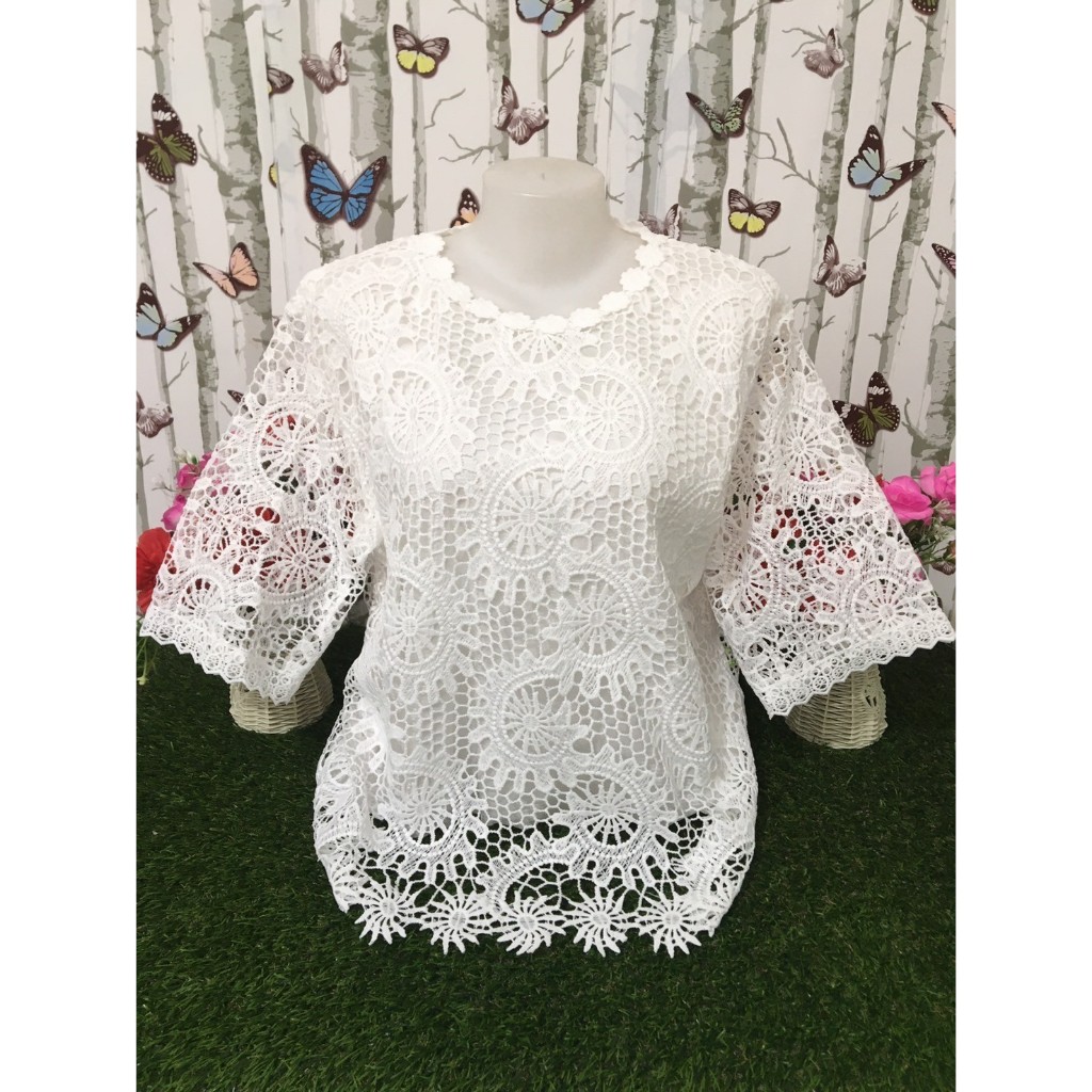 เสื้อลูกไม้ เสื้อลายดอก เสื้อสงกรานต์ ลายดอก คอกลม แขนสามส่วน รุ่น 4605