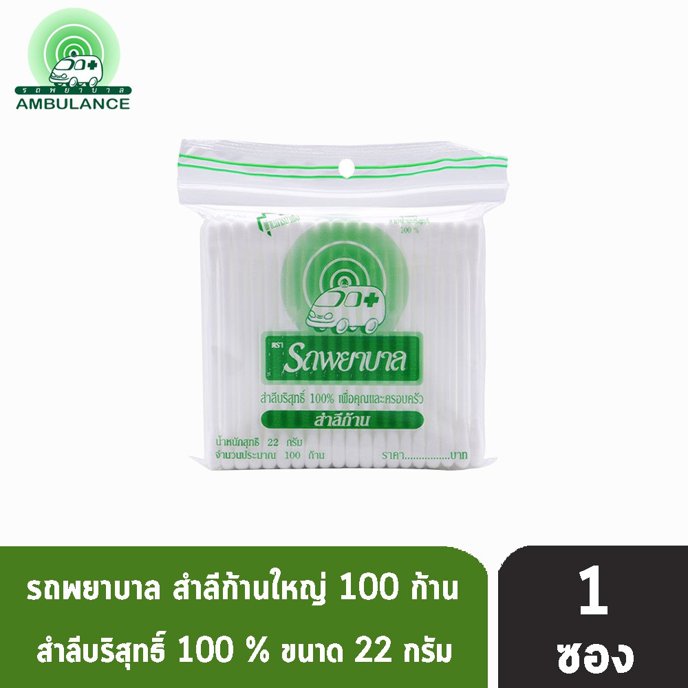 รถพยาบาล สำลีก้าน สำลีบริสุทธิ์ 100% ตรารถพยาบาล จำนวน 100 ก้าน ทุกแบบ JJ 321X