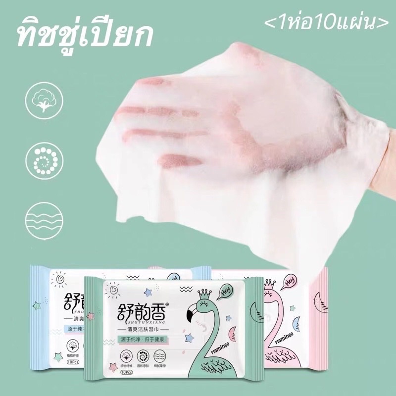 แพ็ค2ห่อ‼️กระดาษทิชชู่เปียก ขนาดพกพา(บรรจุ 10x2 แผ่น) นุ่ม เช็ดสะอาด ราคาประหยัด (กดได้สูงสุด 3 แพ็ค)