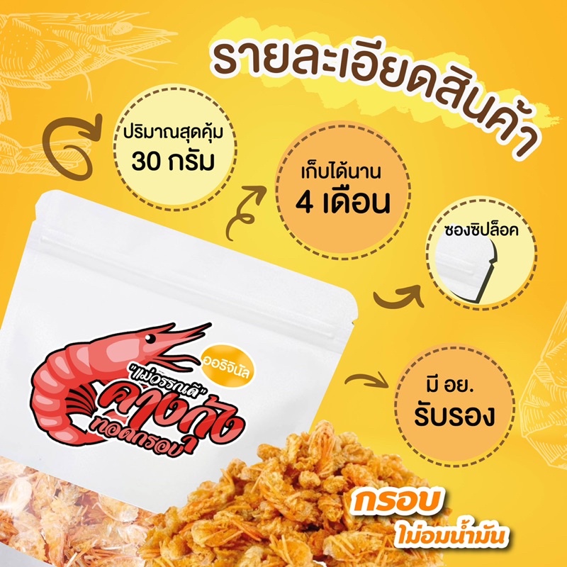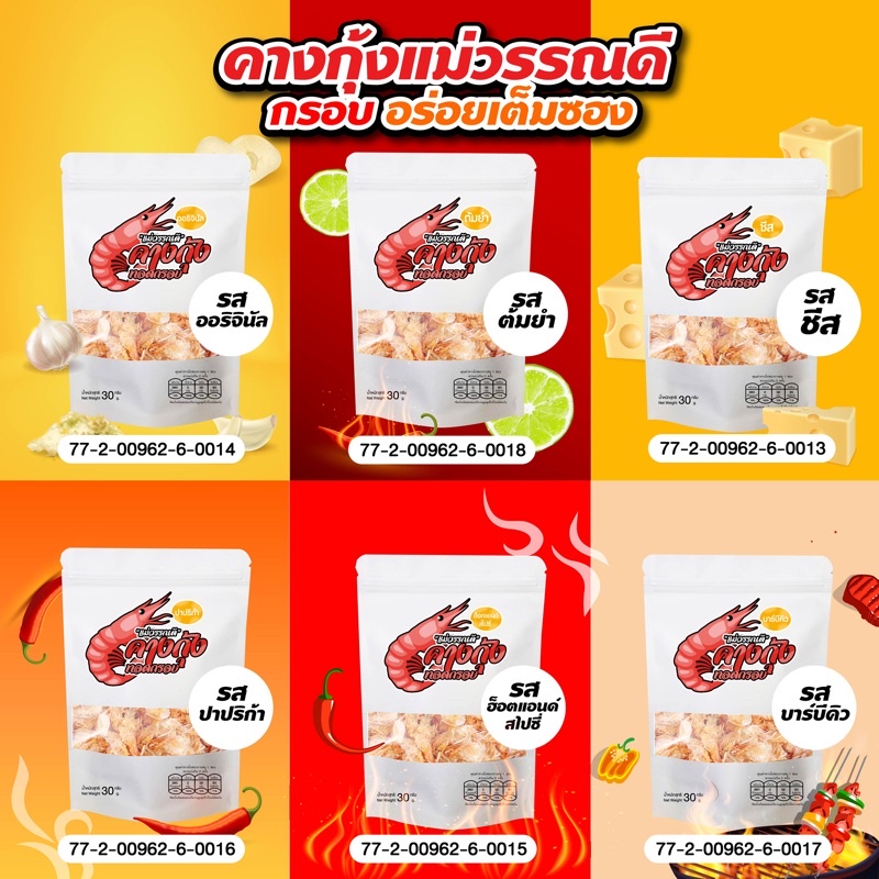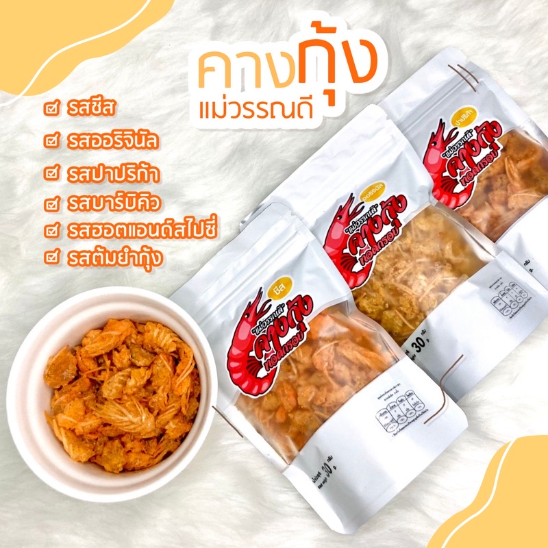 🦐คางกุ้งทอดกรอบปรุงรส "แม่วรรณดี" ขนาด 30 กรัม มี 6 รสให้เลือกตามใจชอบ