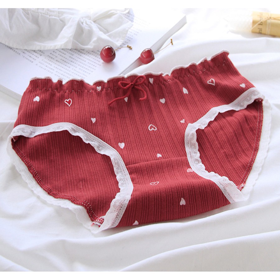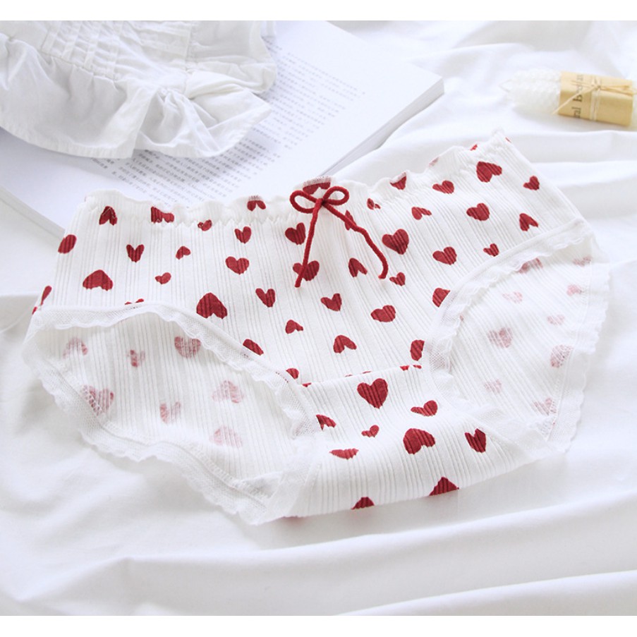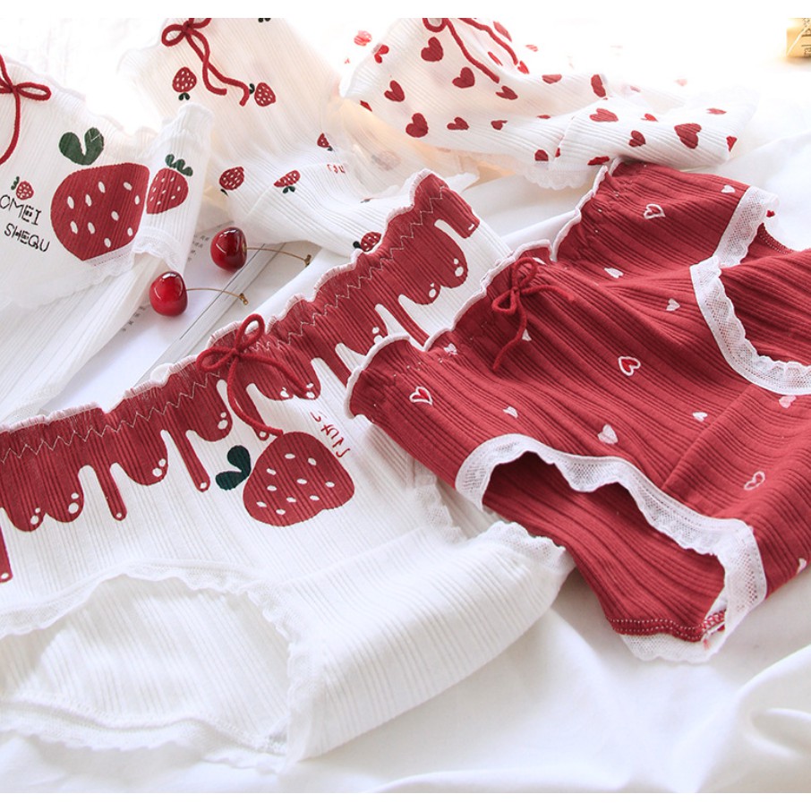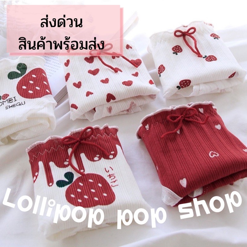 ⭐พร้อมส่งจากไทย⭐LOLIPOP POP SHOP กางเกงชั้นในลูกไม้ ผ้าฝ้าย น่ารัก สไตล์ญี่ปุ่น ลสยหัวใจและสตอร์เบอร์รี่สีแดง