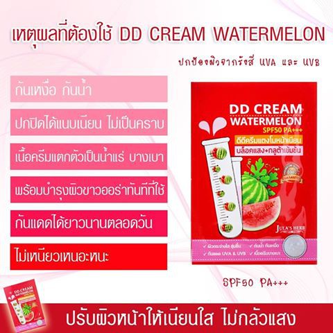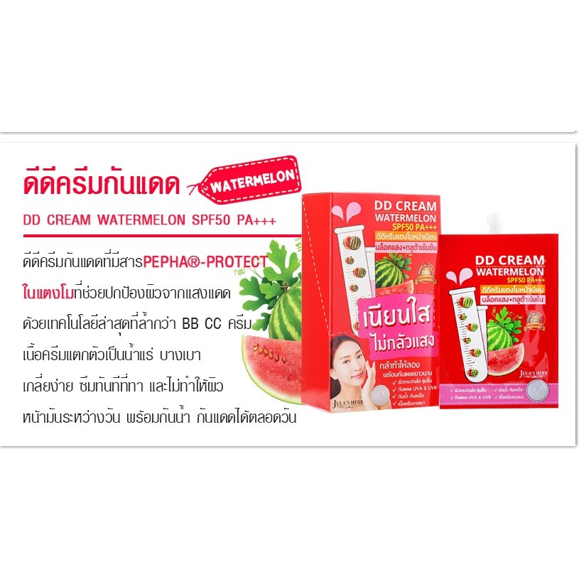 จุฬาเฮิร์บ ดีดีครีมแตงโม1กล่อง 6 ซอง JULA'S HERB DD CREAM WATERMELON SPF 50 PA+++