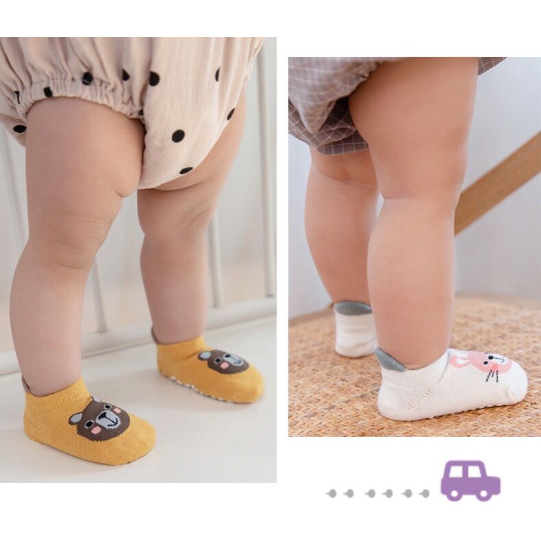 ถุงเท้าเด็กแรกเกิด กันลื่น 1คู่ เนื้อผ้าลี สำหรับ 0-1ปี pso