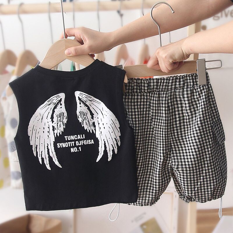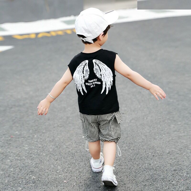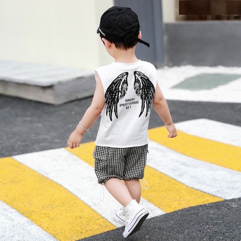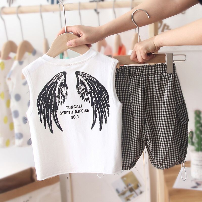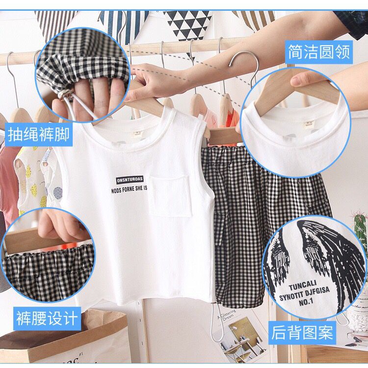 ชุดเด็กแฟชั่นผู้ชายผู้หญิง🌈 2 ชิ้น เสื้อกล้าม + กางเกง สไตล์เกาหลี เนื้อผ้าดี 78cm-103cm(8เดือน -4 ปี) PFS0053