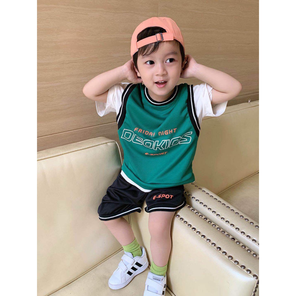 เสื้อผ้าเด็ก เสื้อผ้าแฟชั่นเด็ก สไตล์เกาหลี ชุดกีฬา ชุดบาสเกตบอล🏀Deokids เนื้อผ้าดี สบาย ใส่น่ารักมากค่ะ (ไซส์90-130cm)