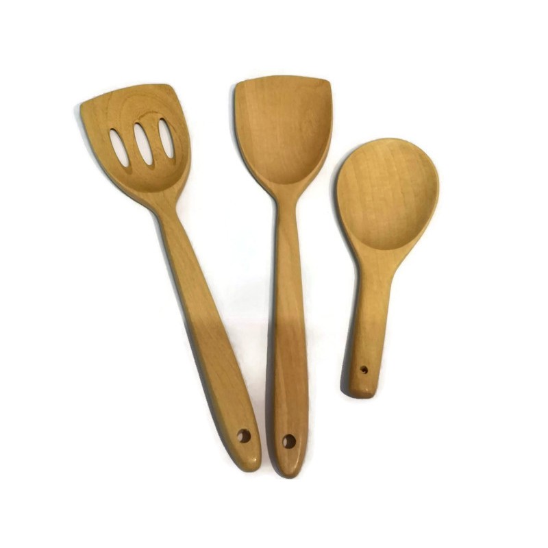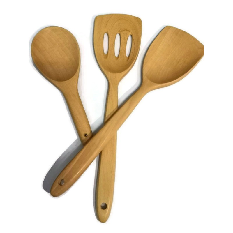 เซทยอดนิยม 3 ชิ้น: ตะหลิวไม้กันเกรา/จะบก 2 ชิ้น สำหรับผัดและทอด + ทัพพีตักข้าว เป็นงานทำมือ ไม่เคลือบสารเคมีใดๆ