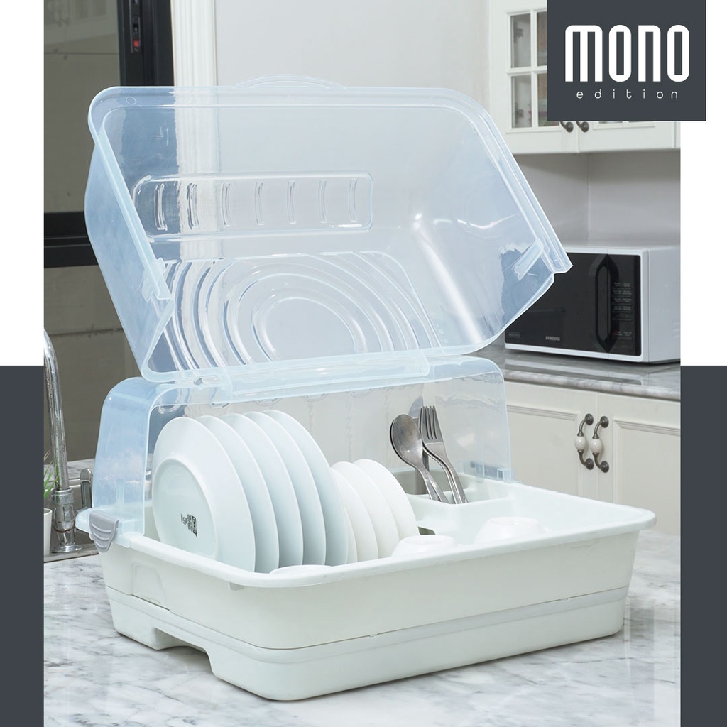 ที่คว่ำจาน 1 ชั้น แบรนด์ Clip Pac มีช่องใส่ช้อน เก็บจาน ชาม แก้วน้ำ พร้อมถาดรองน้ำ