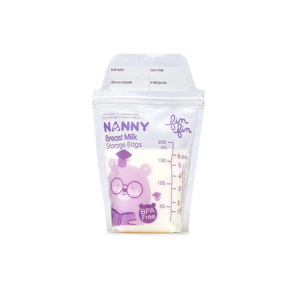Nanny Fin Fin ถุงเก็บนม ถุงเก็บน้ำนม 5 ออนซ์ ลายหมีสุดน่ารัก 1 กล่อง (50 ถุง) มี BPA Free