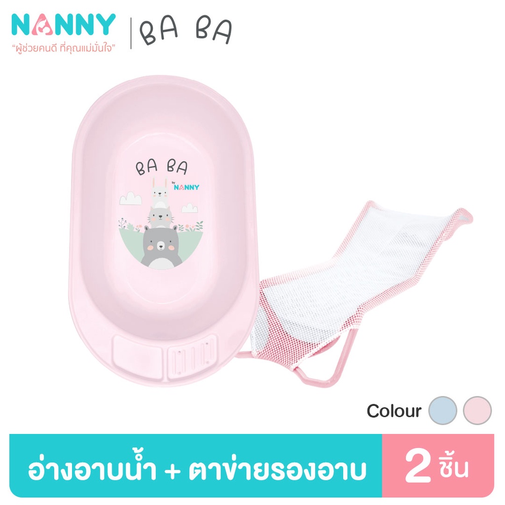 Nanny ชุดอ่างอาบน้ำเด็ก พร้อมตาข่ายรองอาบน้ำ มีช่องวางของและวางสบู่ 2 ช่อง เหมาะสำหรับเด็กแรก