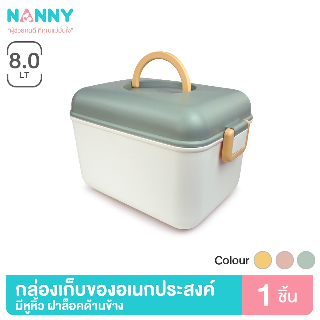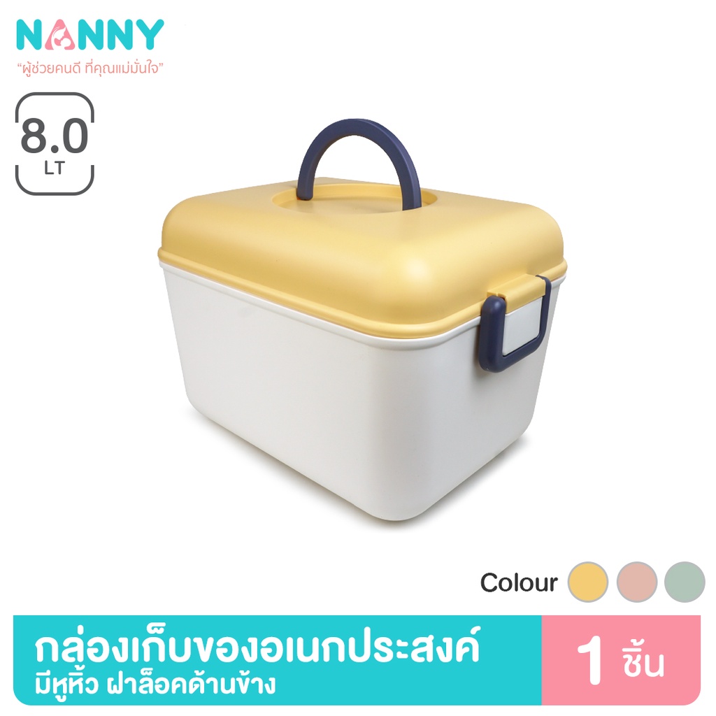 Nanny กล่องเก็บของเอนกประสงค์ มีหูหิ้ว ฝาล๊อคด้านข้าง ขนาดเล็ก (คละสี)