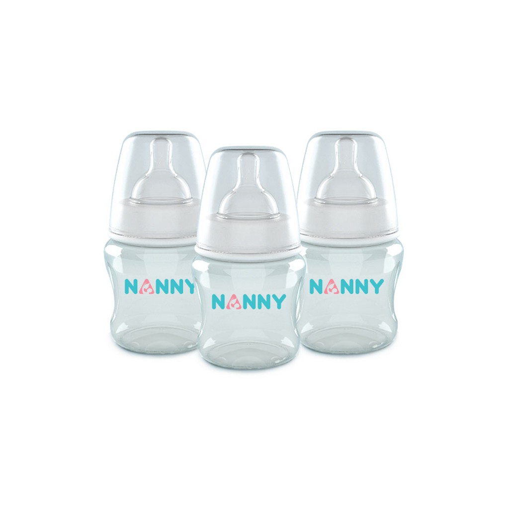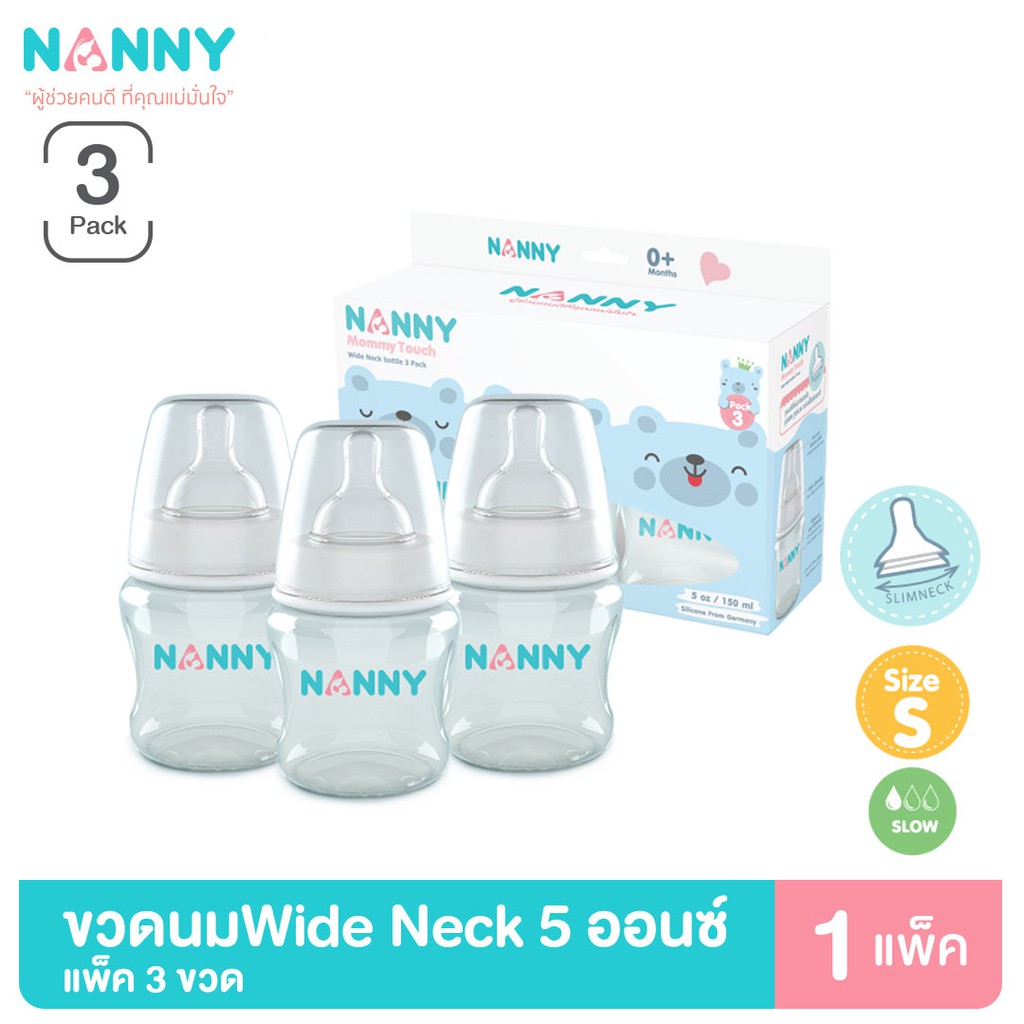 Nanny ขวดนม ขวดนมพร้อมจุกนม ขนาด 5 ออนซ์ รุ่น Wide Neck จุกนมชิลิโคนจากเยอรมัน มี BPA Free 1 กล่อง (3 ขวด)