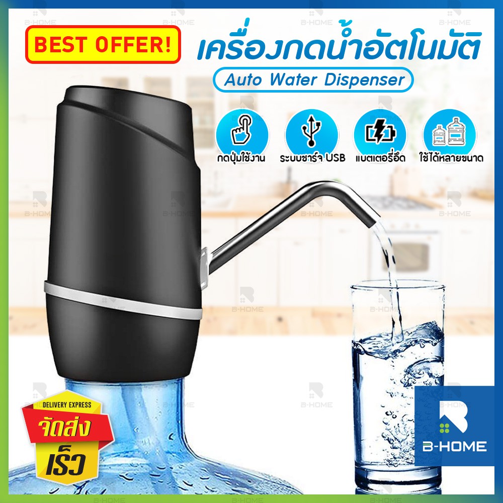 B-HOME ปั๊ มน้ำดื่มไฟฟ้า เครื่องกดน้ำอัตโนมัติ แบบไร้สาย แบบชาร์จ USB ใช้กับถังน้ำ 5 แกลลอนได้