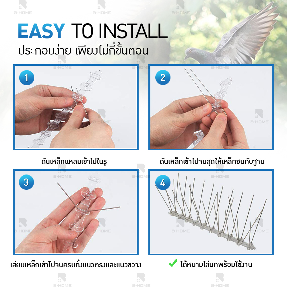 หนามไล่ นก B-HOME ที่ กัน นกพิราบ เกาะ ที่กันนก ไล่นกพิราบ ตาข่ายกันนก หนามกันนก Bird Spikes
