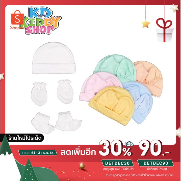 🔥ลด 0.- ใส่โค้ด INCFF12🔥 เซตหมวก ถุงมือ ถุงเท้าเด็กแรกเกิดครบเซ็ต ผ้าสีไม่ปัก เลือกสีได้ made in Thailand