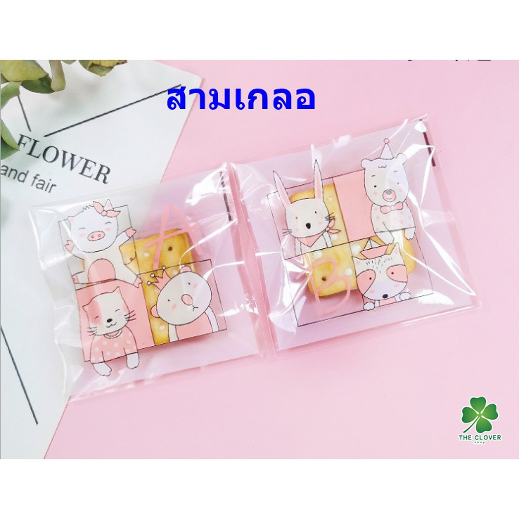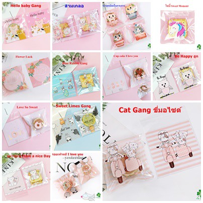 (Set 4) ถุงฝากาว แถบกาว ใส่คุกกี้ ใส่ขนมขนาด10X10+3 cm. แพ็คละ 95-100 ใบ(เลือกลายได้)