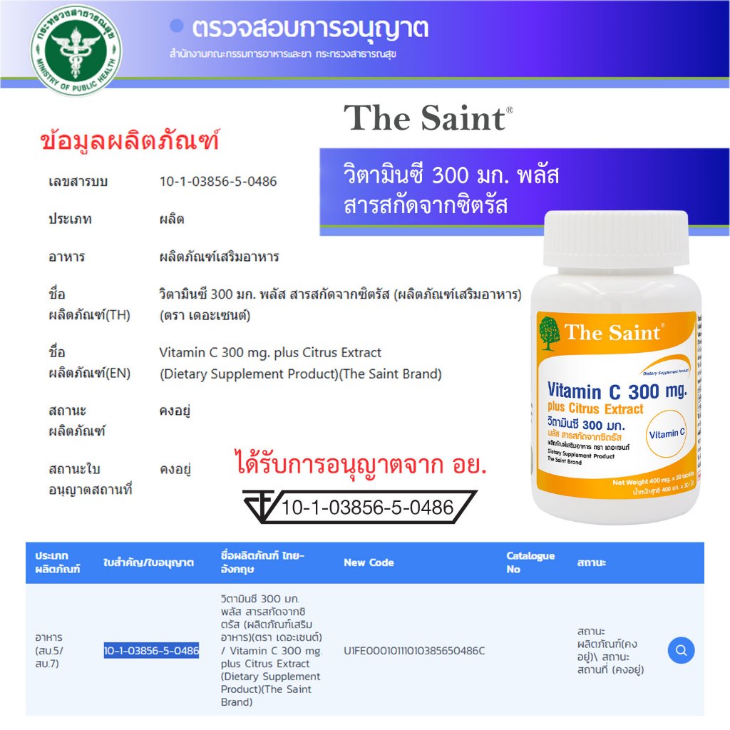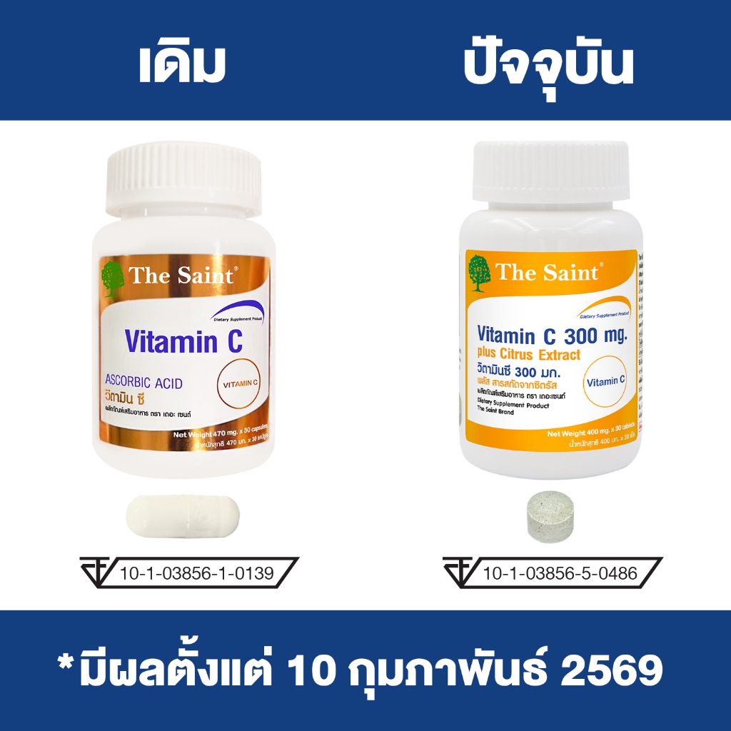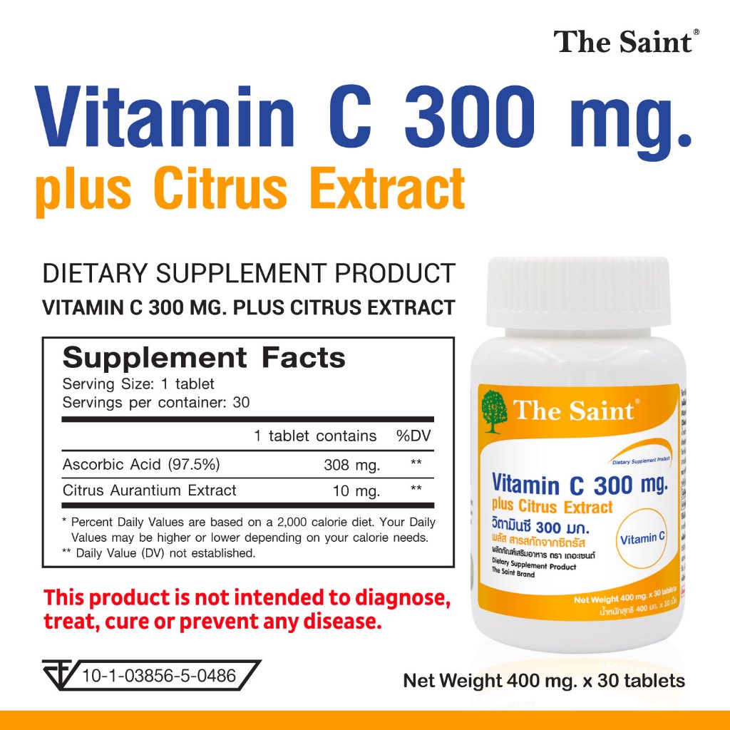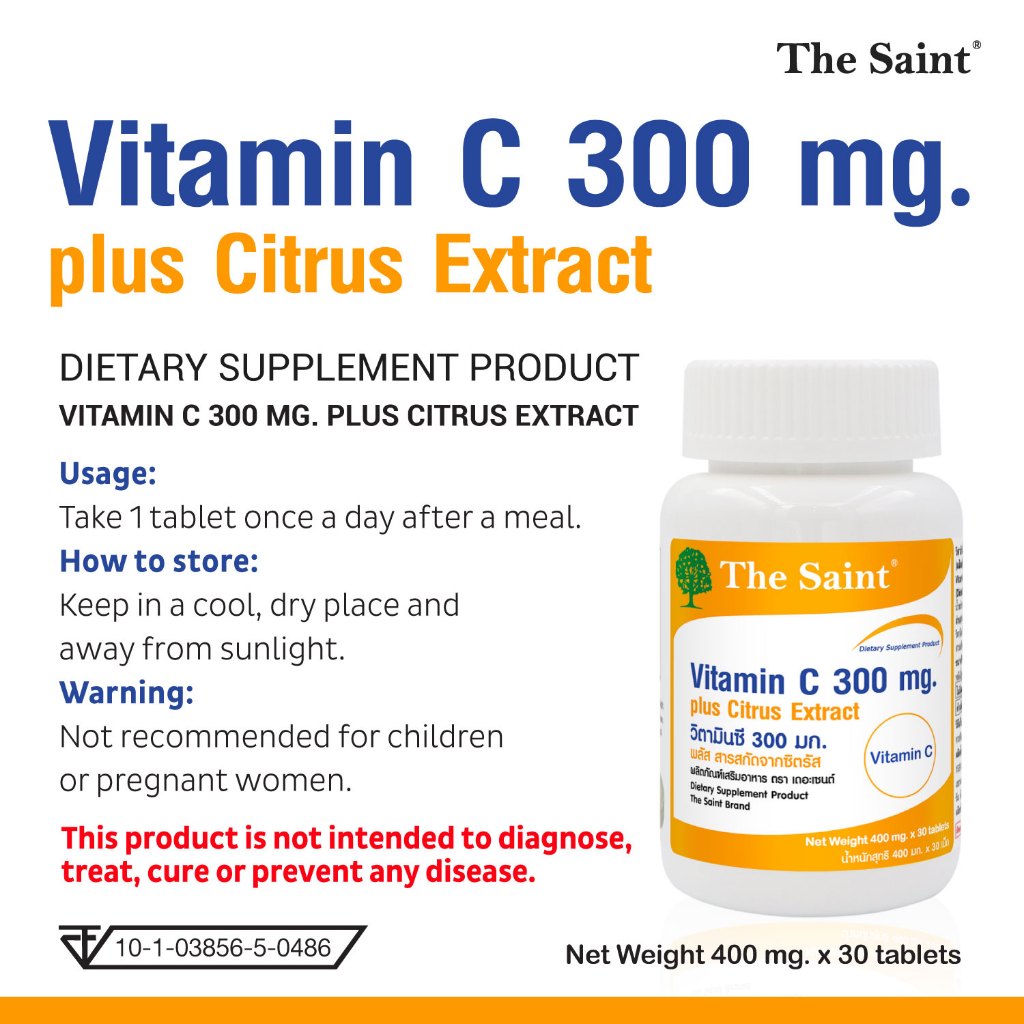 วิตามินซี 300 มก. เดอะเซนต์ x 1 ขวด Vitamin C 300 mg. plus Citrus The Saint วิตามินซีพลัส ซิตรัส วิตามินซี พลัส ซิตรัส
