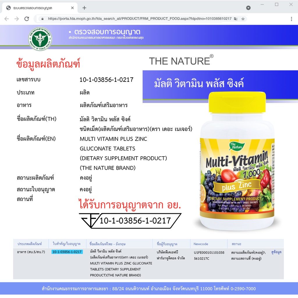 [ซื้อ 1 แถม 1] วิตามินรวม พลัส ซิงค์ มัลติวิตามิน Multi Vitamin plus Zinc เดอะ เนเจอร์ THE NATURE multivitamin
