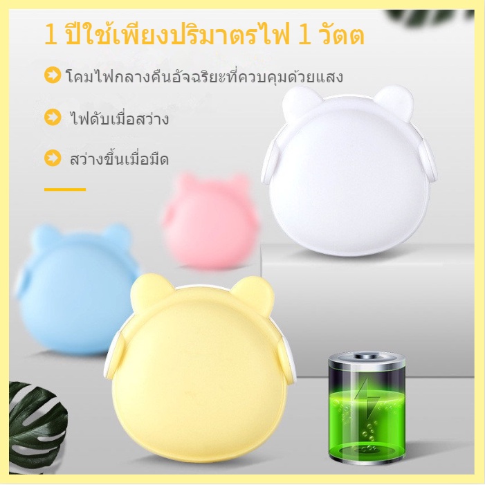 LED Motion Sensor โคมไฟหมีใส่หูฟัง ไฟห้องนอน ไฟหัวเตียงโคมไฟกลางคืน โคมไฟเซ็นเซอร์ Auto On-Off