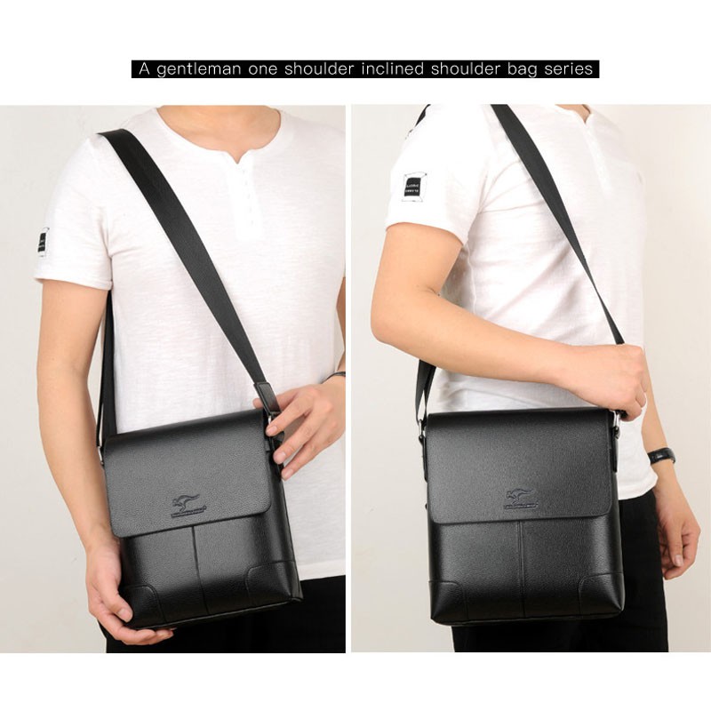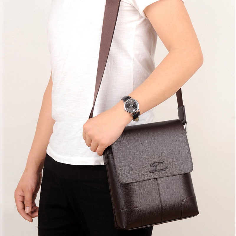 กระเป๋าสะพายข้างหนังแท้สำหรับผู้ชายความจุขนาดใหญ่แฟชั่นย้อนยุค