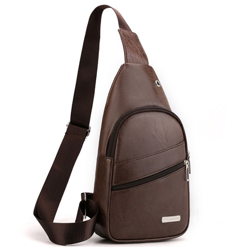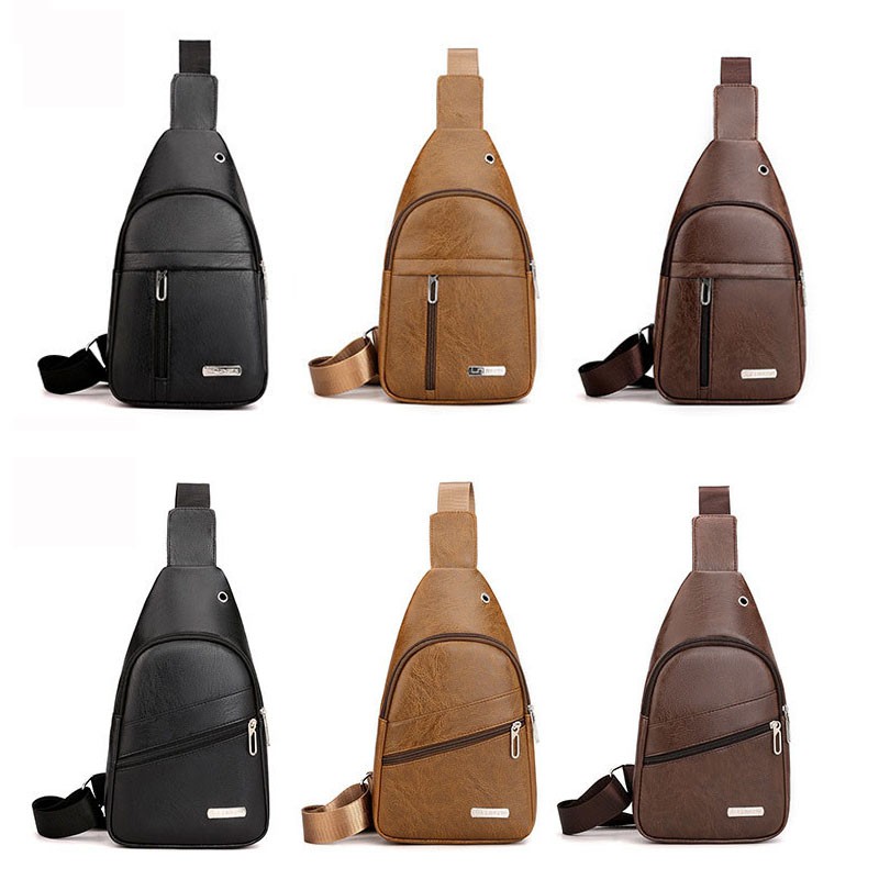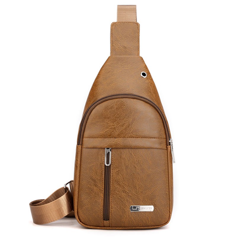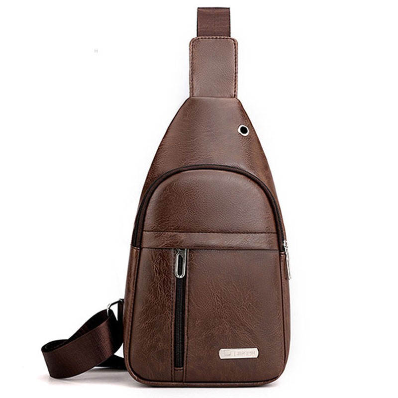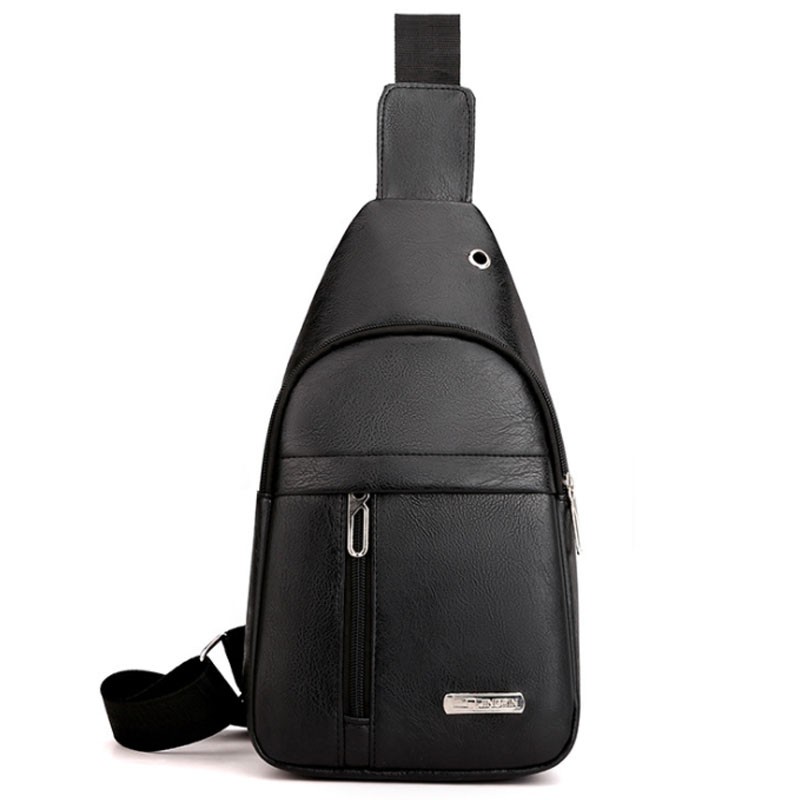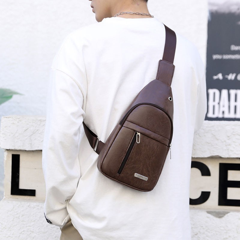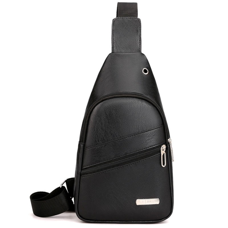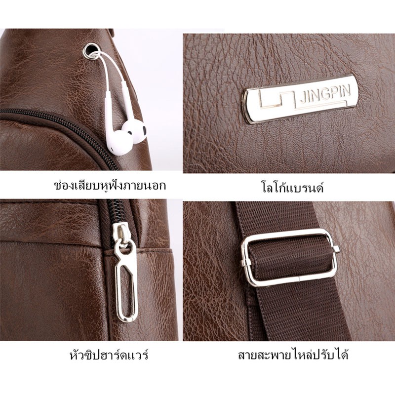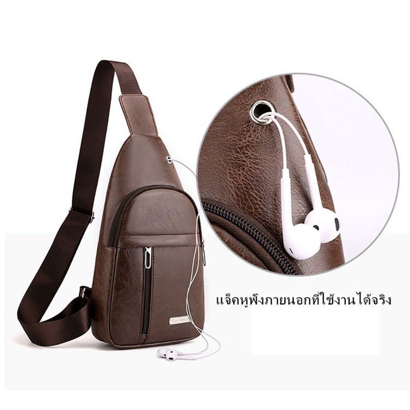 แฟชั่นผู้ชาย กระเป๋าคาดอก ช่องเสียบหูฟังภายนอก