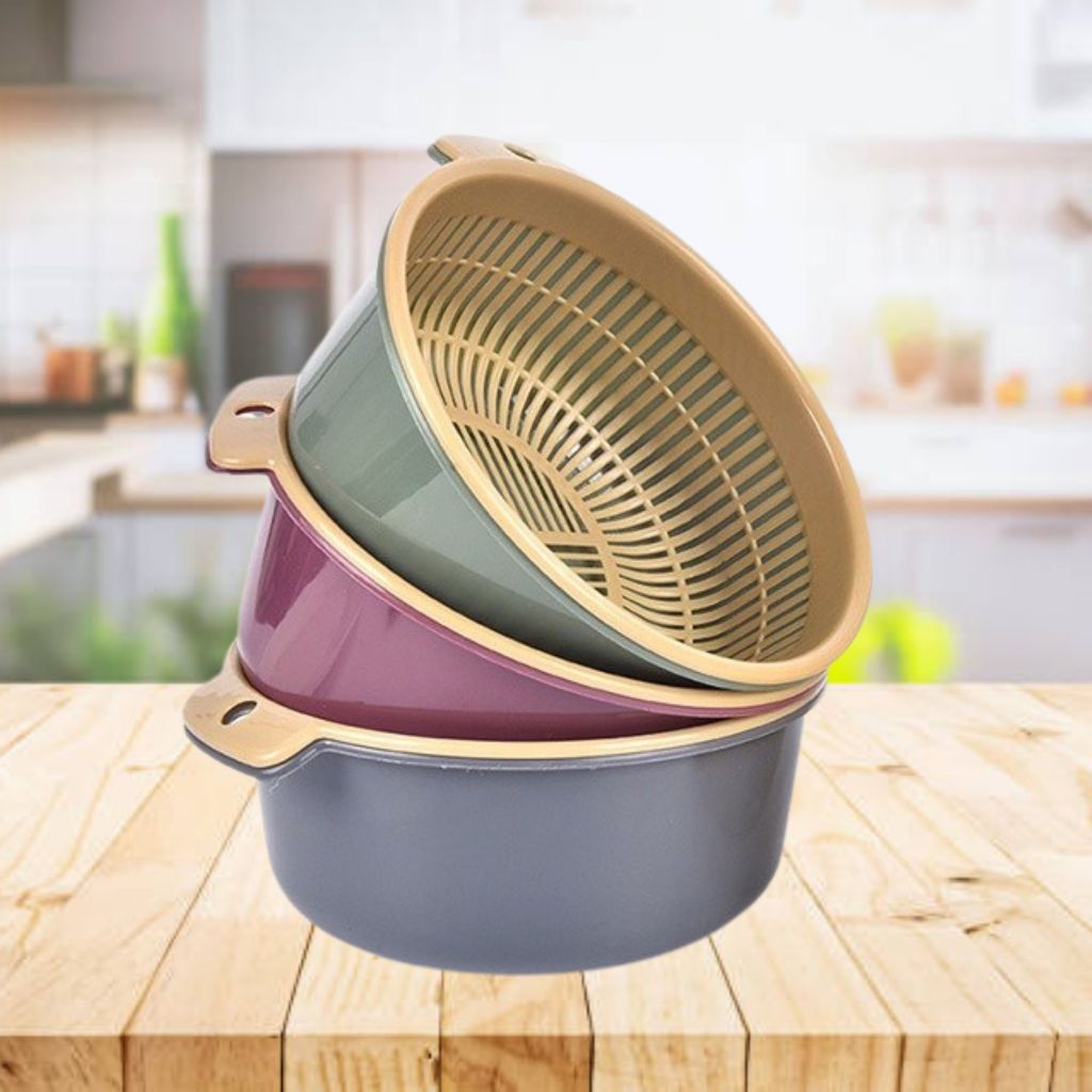 ตะกร้าล้างผักผลไม้ ชามล้างผลไม้ 2 ชั้น มีรูระบายน้ำ กะละมัง ล้างผัก กะละมัง หลายขนาดให้เลือก aliz.s