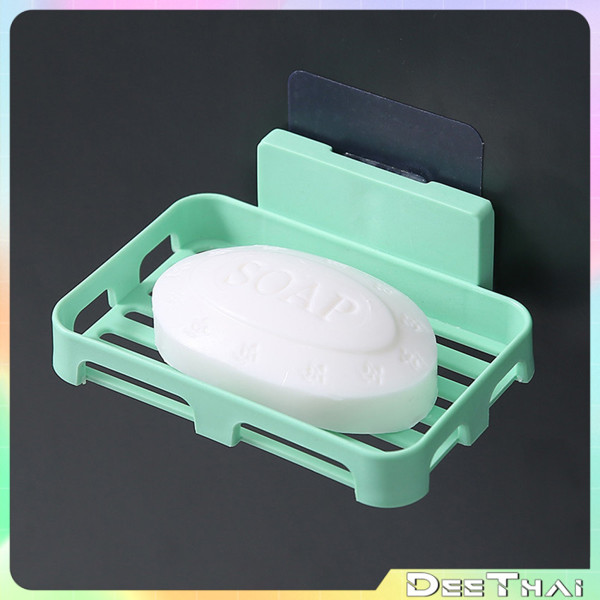 Dee Thai ที่วางสบู่พลาสติกและฟองน้ำล้างจาน ไม่ต้องเจาะผนัง พร้อมส่ง Wall-mounted soap dish