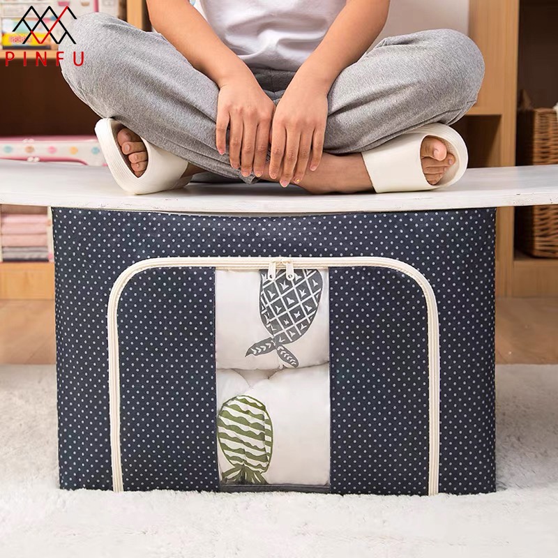 PINFU_SHOP กล่องพับอเนกประสงค์ กล่องใส่ของ เก็บได้มีซิปเปิด-ปิด 2 ด้าน