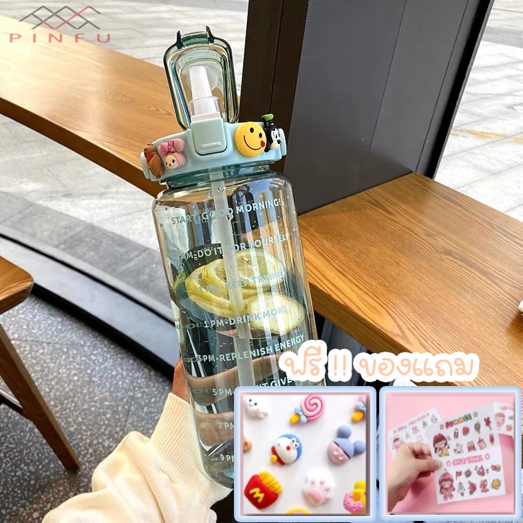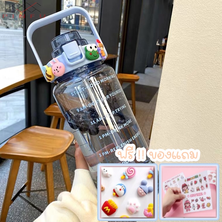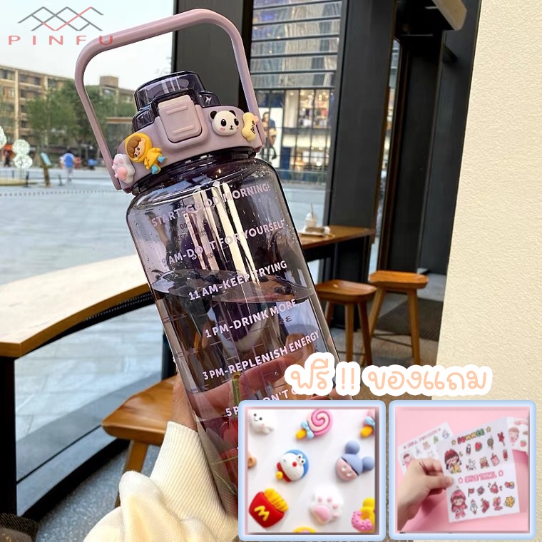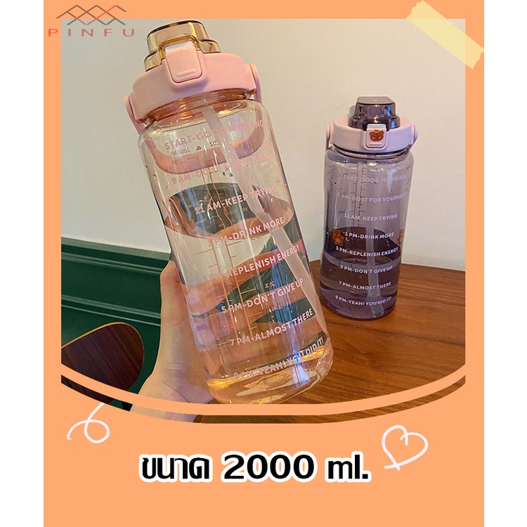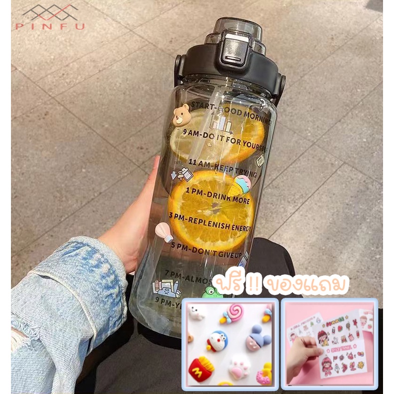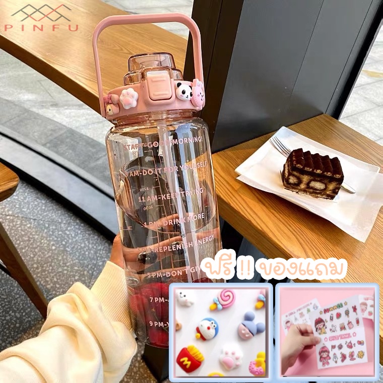 PINFU_SHOP ขวดน้ำ2ลิตร บอกเวลา พลาสติกใส แถมฟรี!!สติกเกอร์ทุกขวด