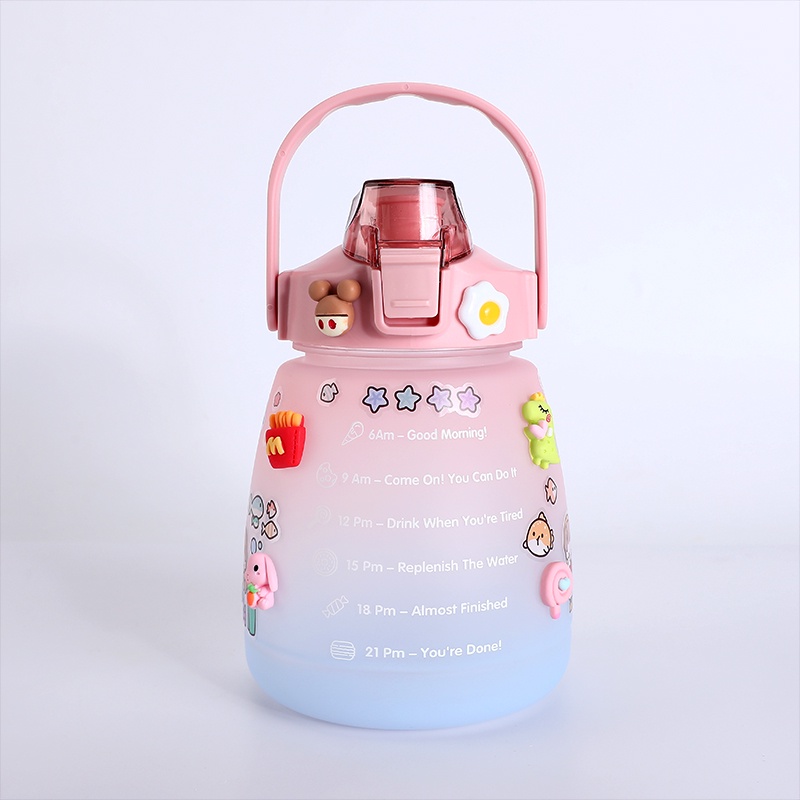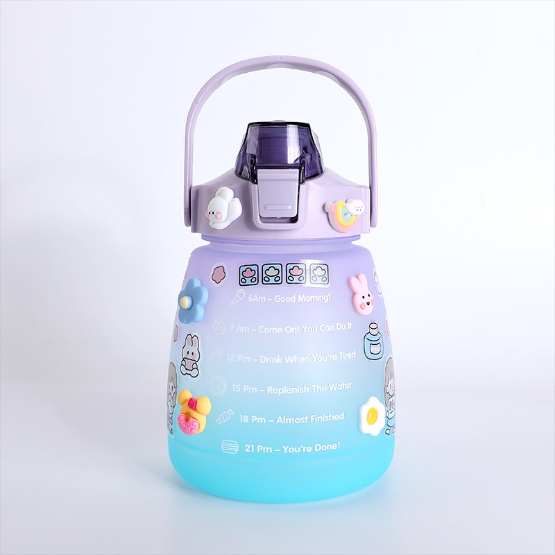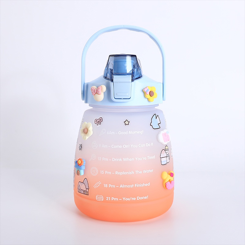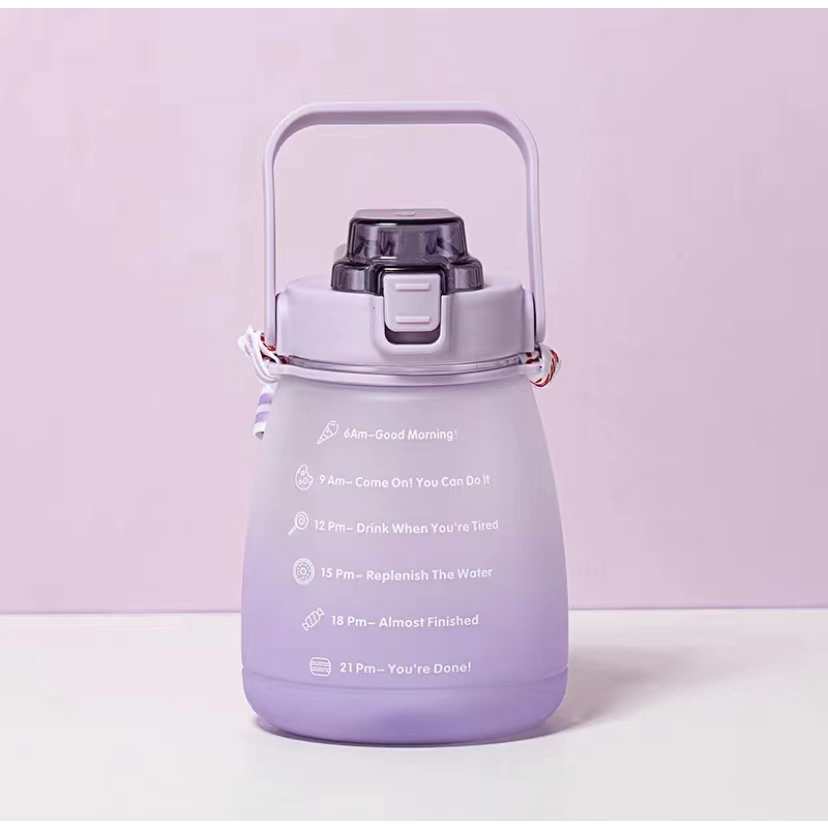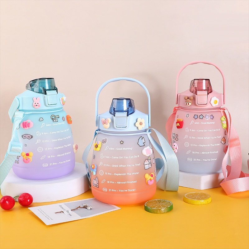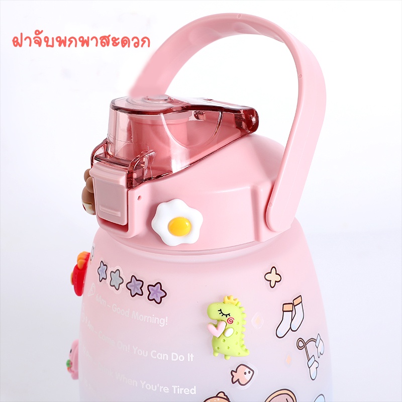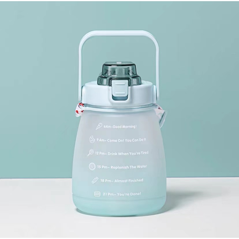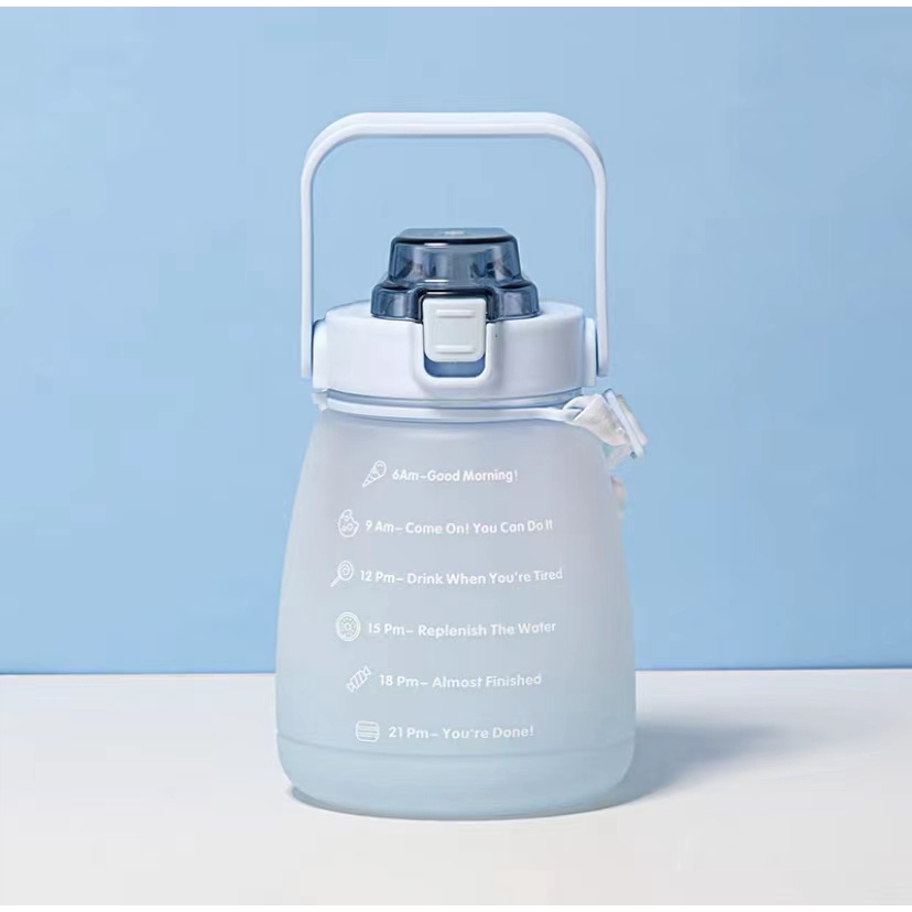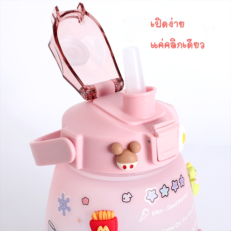 ขวดน้ำดื่ม ขวดน้ำพกพา 1300มล. กระบอกน้ำบอกเวลา มีสายสะพาย+หลอดซิลิโคน สไตล์มินิมอล แถมฟรี!!สติ๊กเกอร์แบบสุ่มลาย
