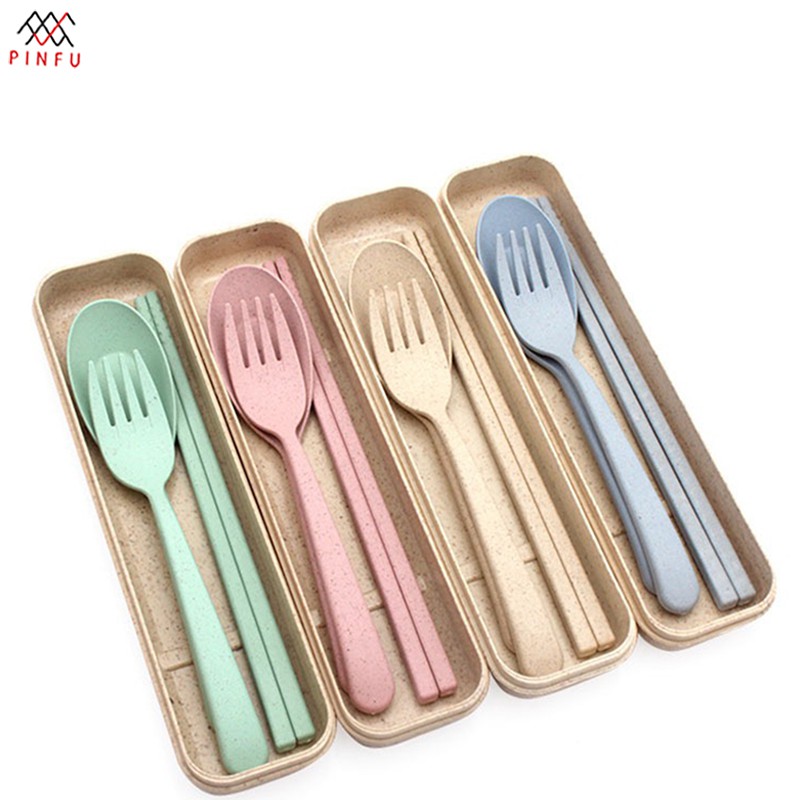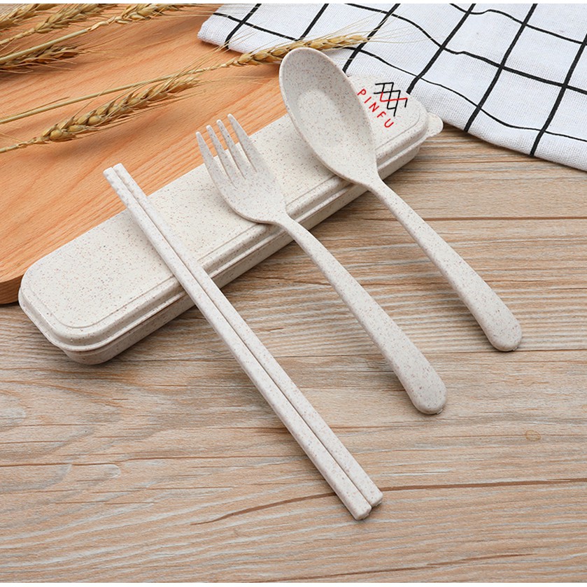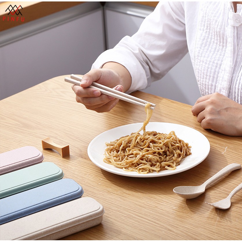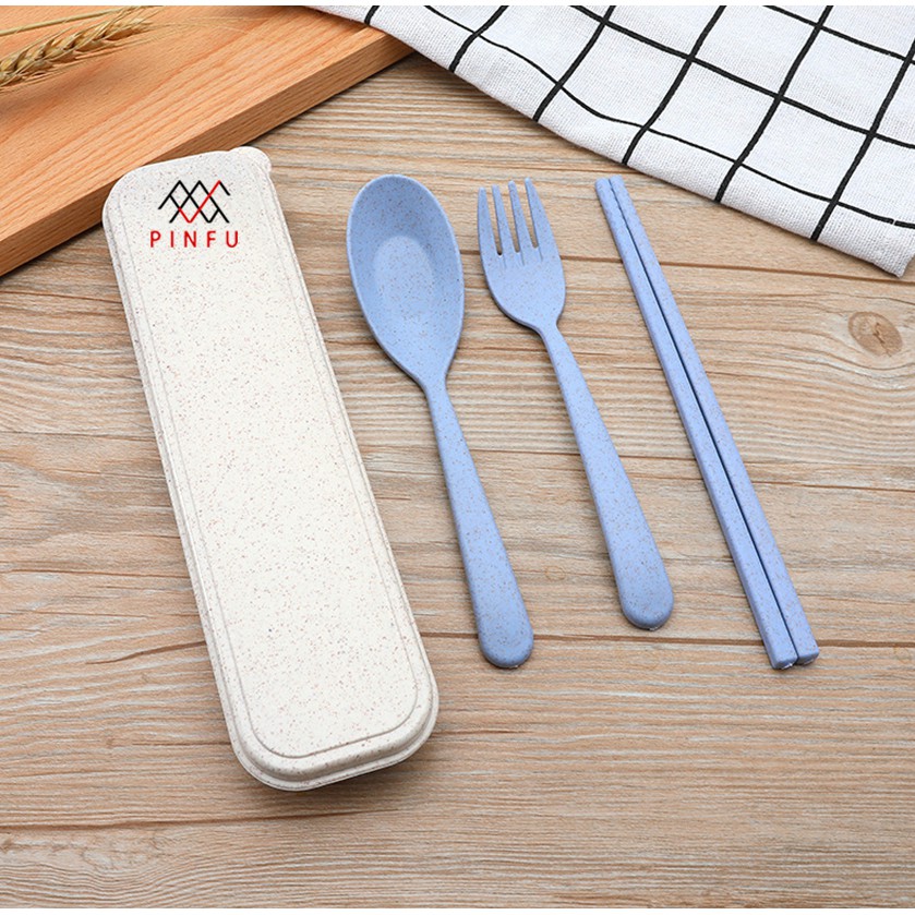 PINFU_SHOP ชุดช้อนส้อม+ตะเกียบ พร้อมกล่องใส่ขนาดพกพา มี4 สีให้เลือก(k-208)