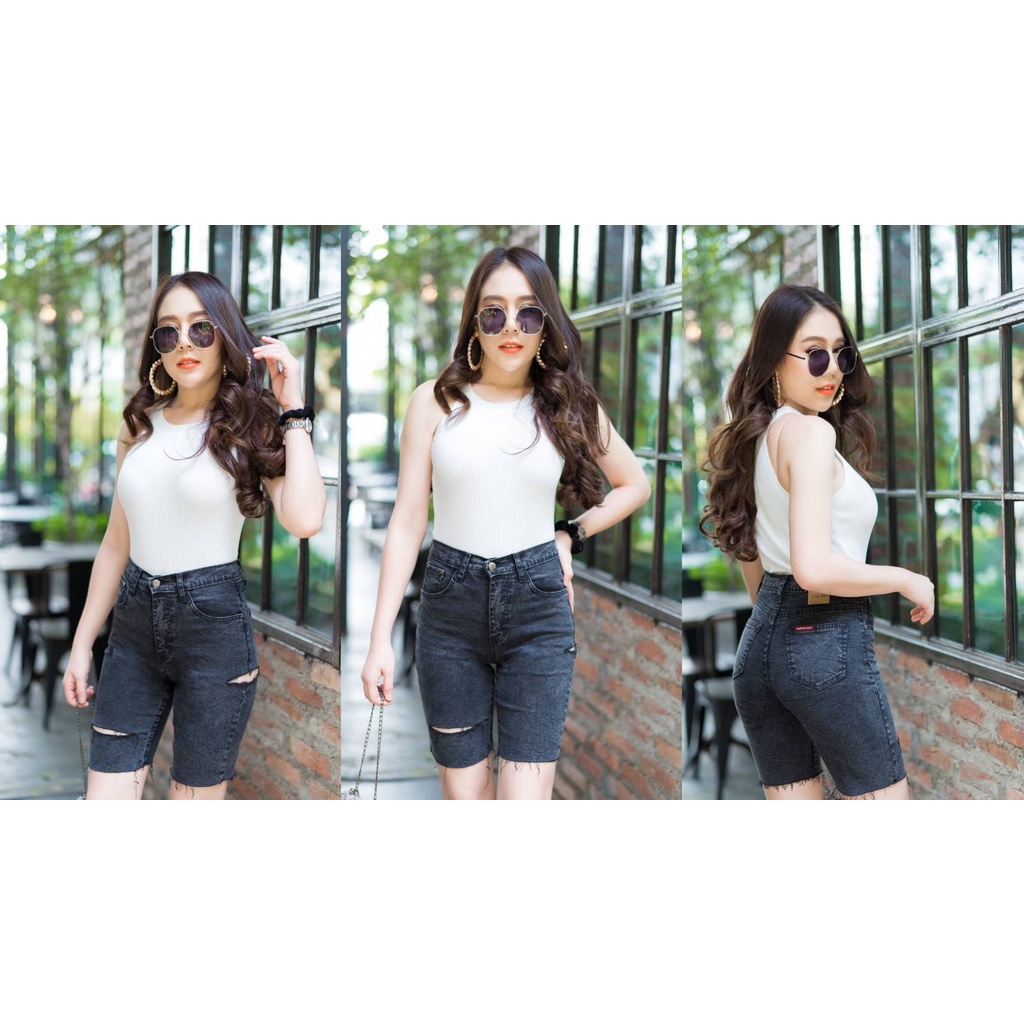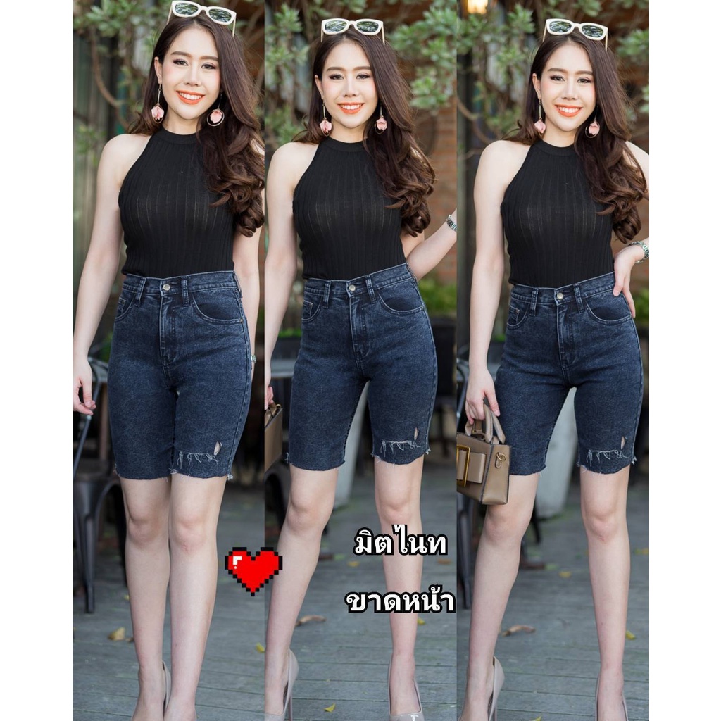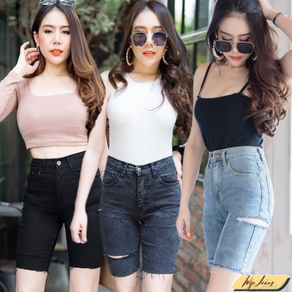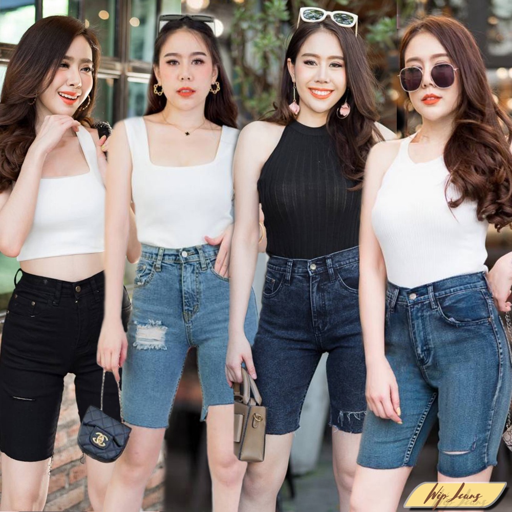 🧶 กางเกงยีนส์ผู้หญิงขาสั้น สามส่วน ผ้ายืด เอวสูง ทรงเข้ารูป เก็บทรง 🧶 3ส่วน กางเกงขาสั้นผู้หญิง
